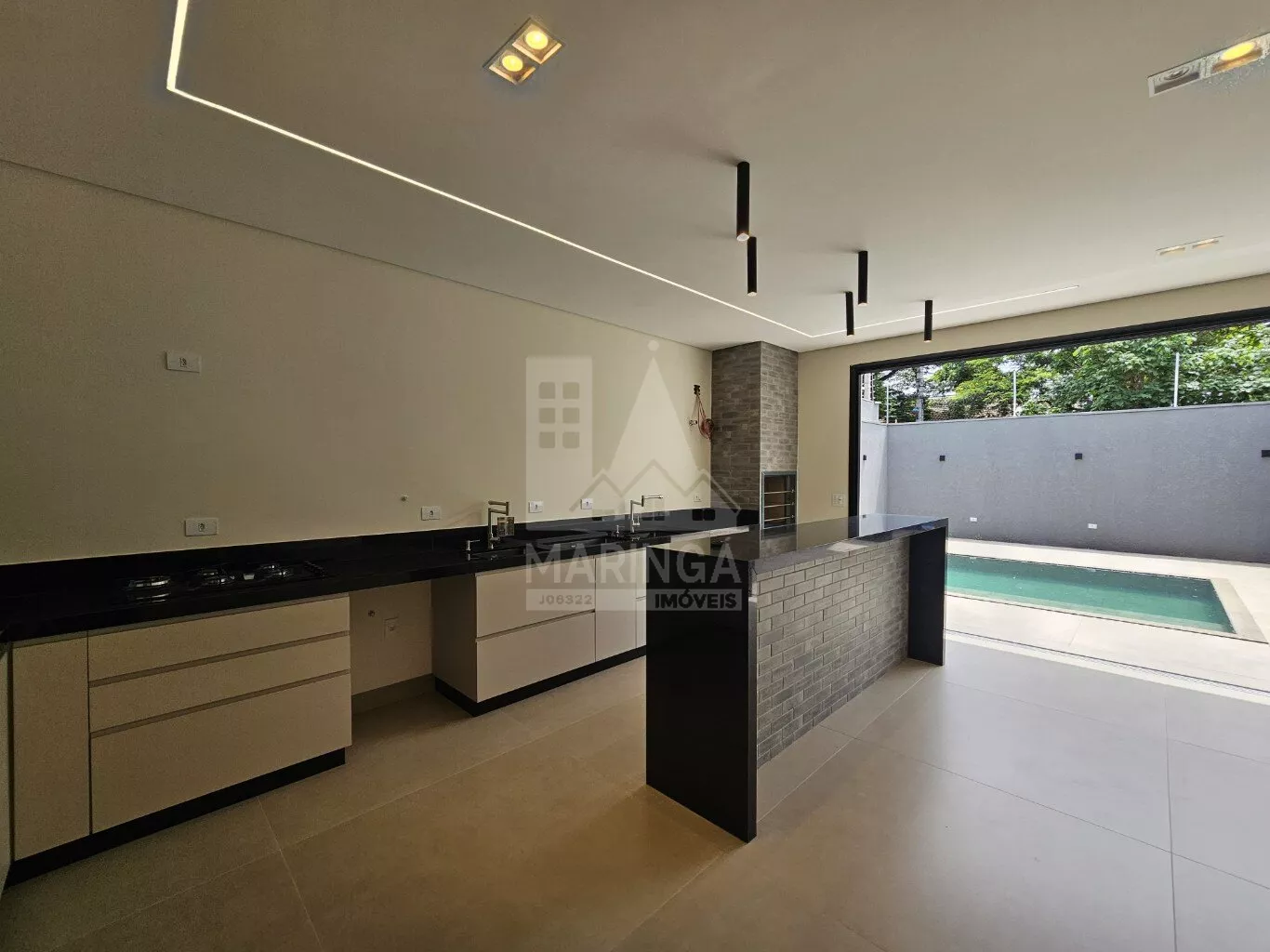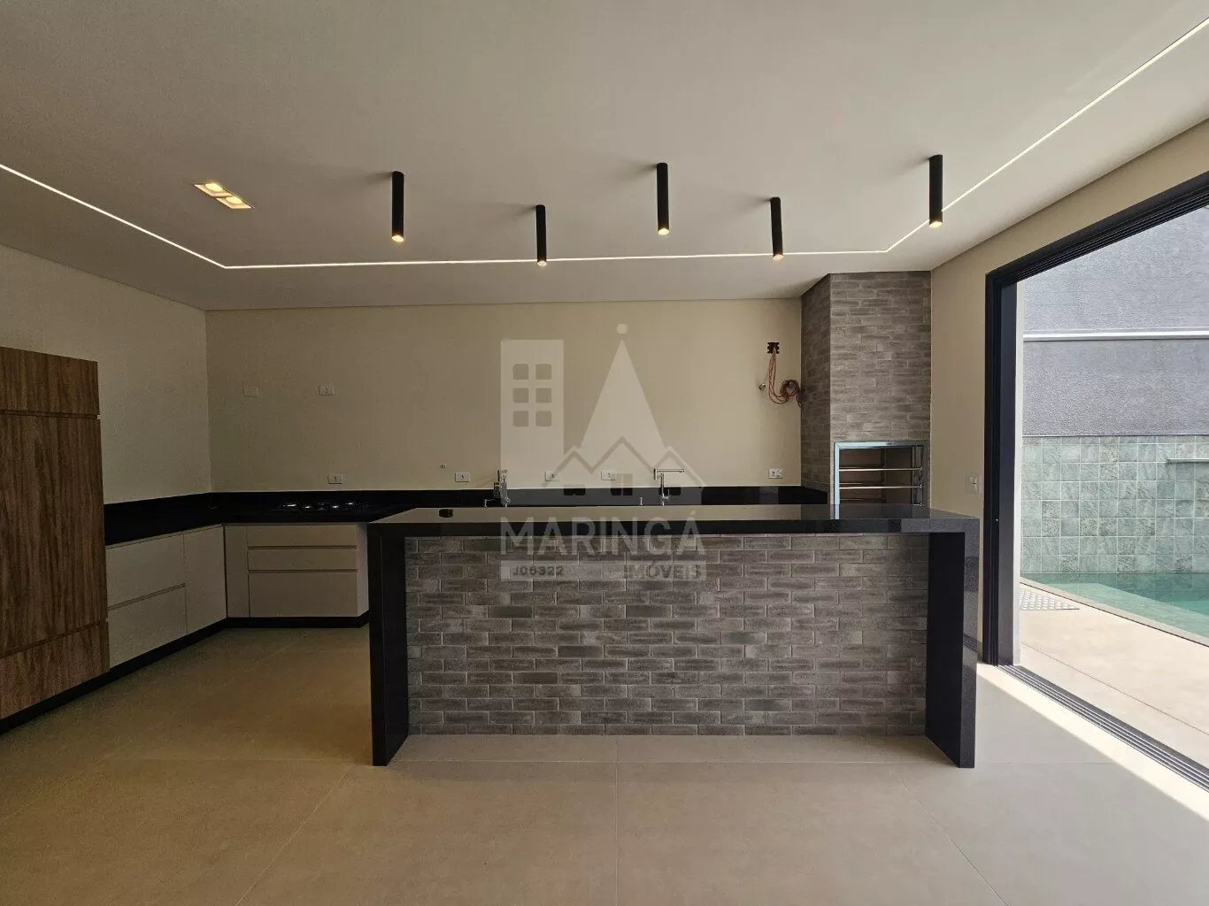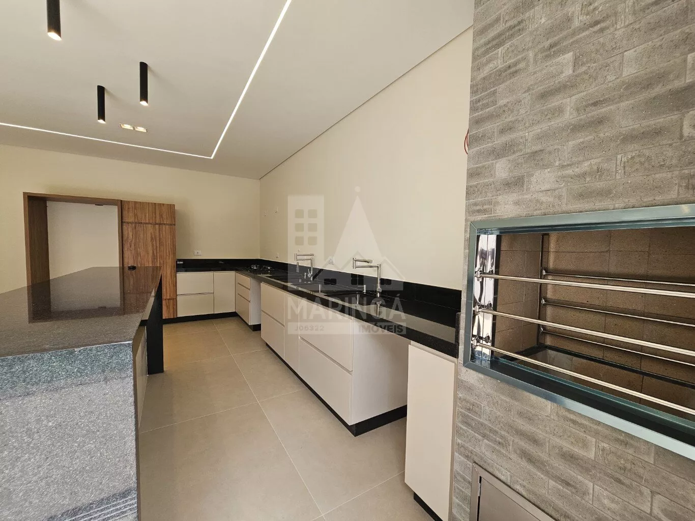 - Ilha em granito com acabamento em porcelanato 3D;