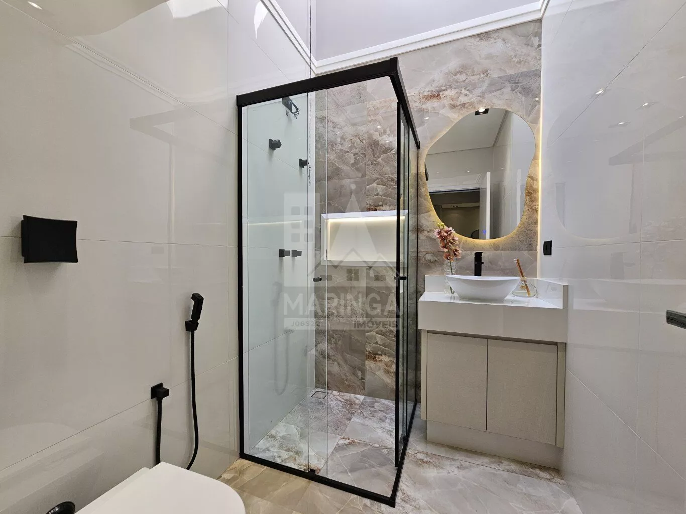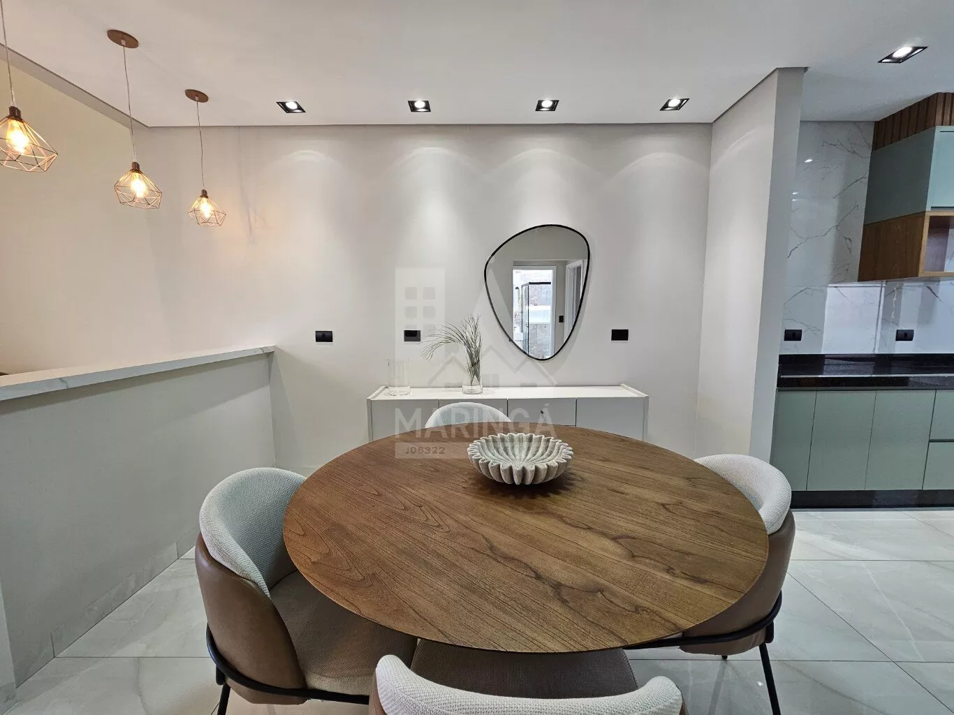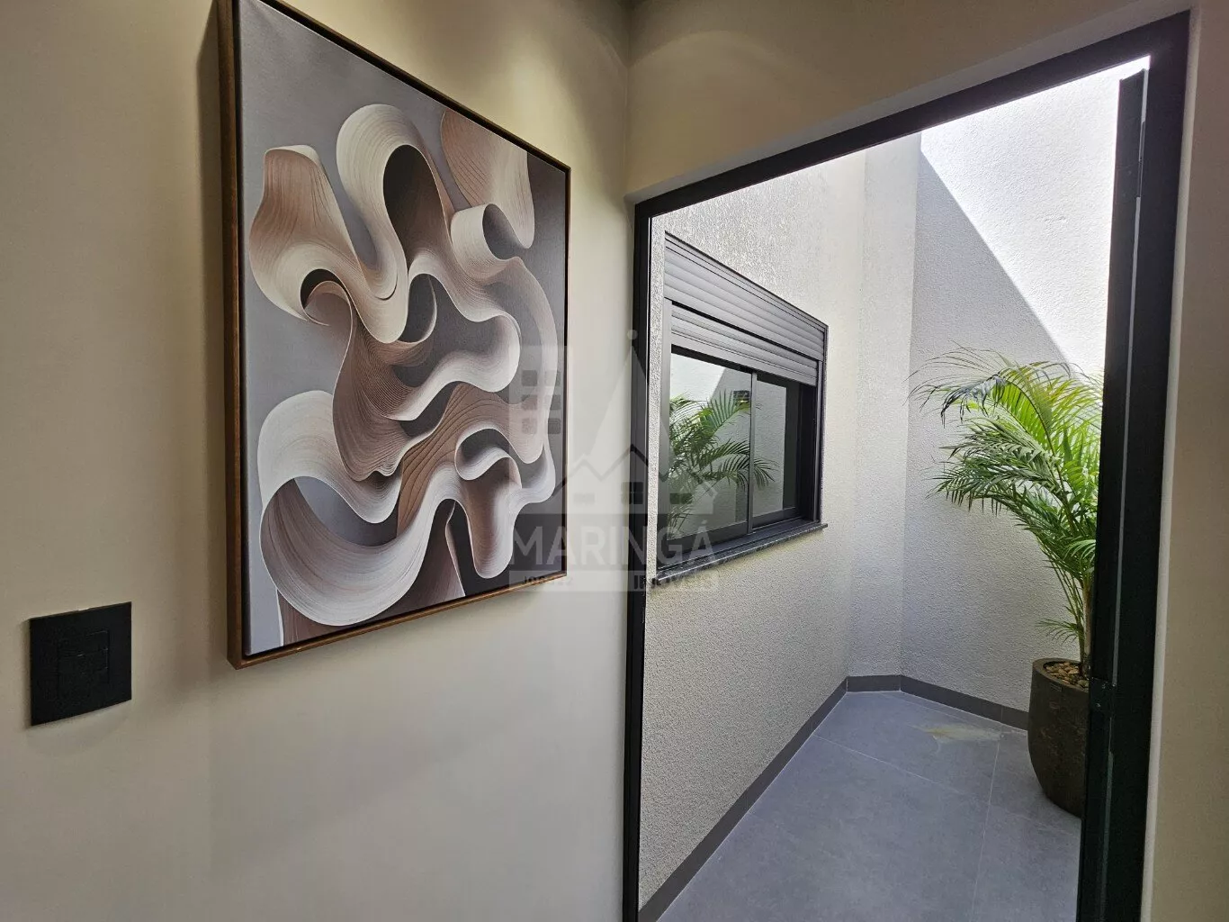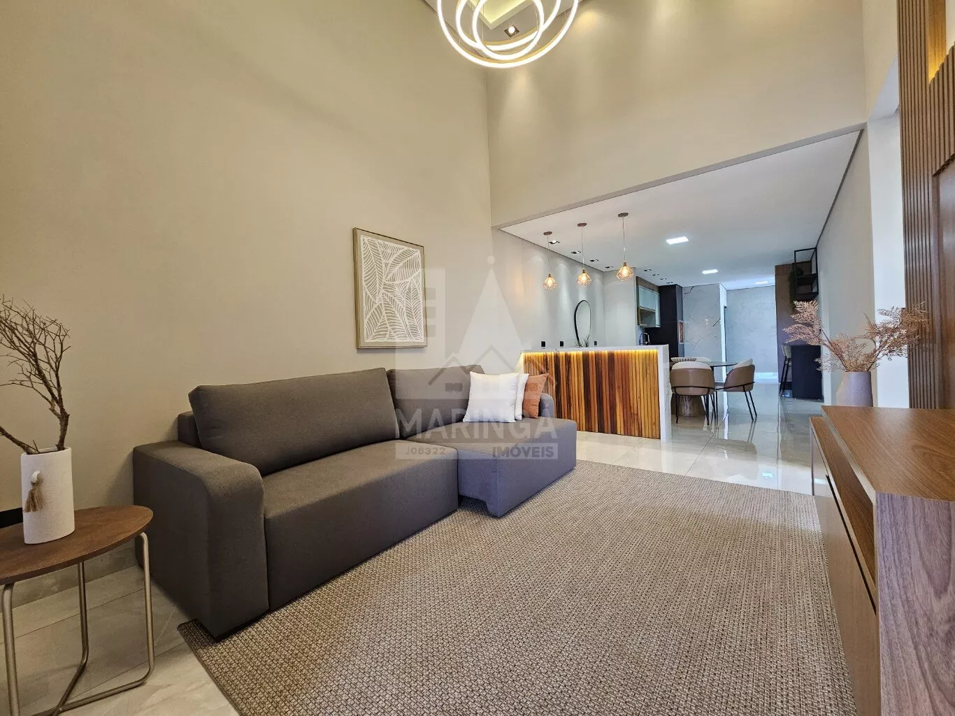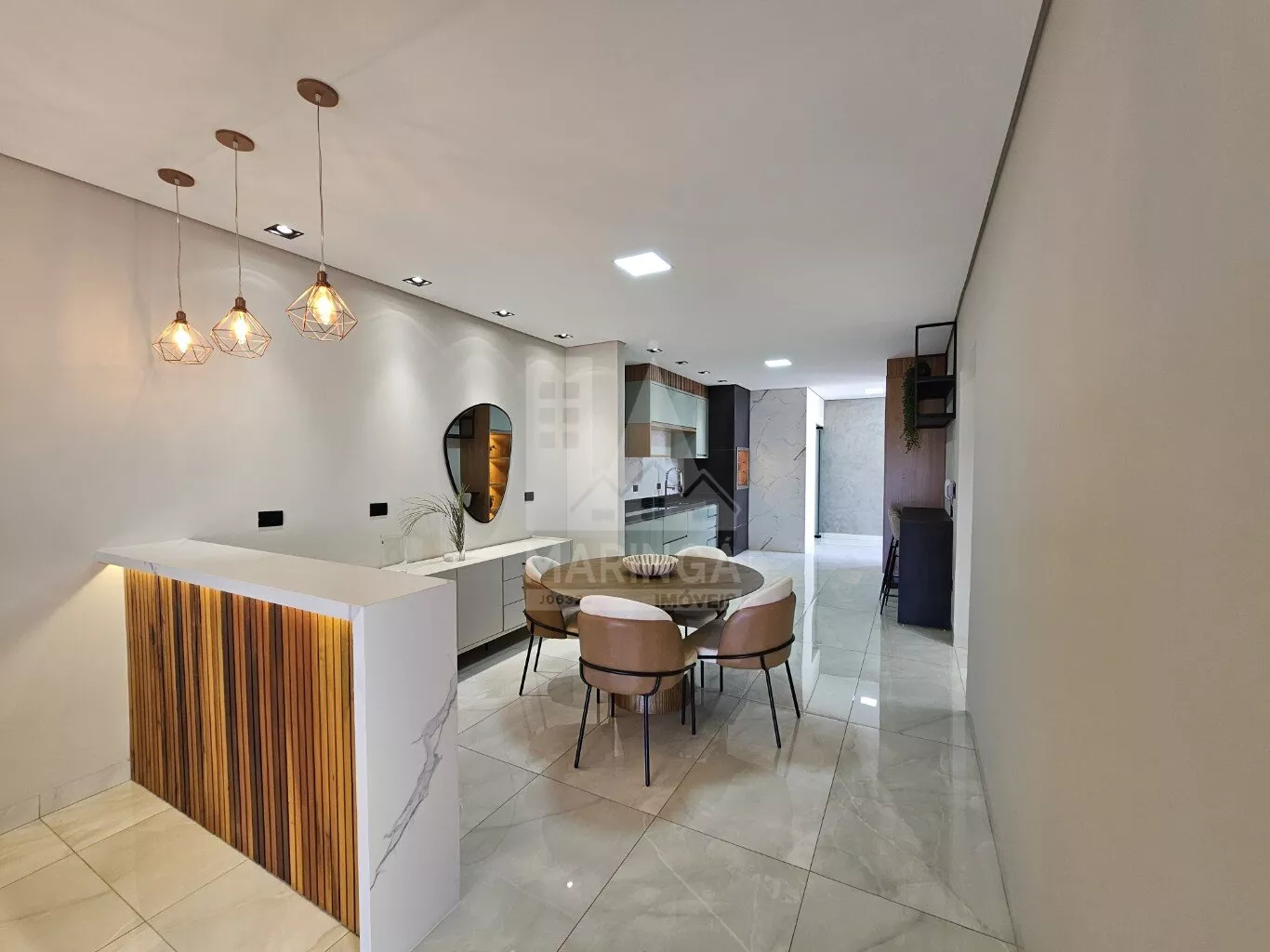 Casa recém finalizada com excelente integração de ambientes e um fino acabamento, contando com móveis planejados e uma excelente decoração em seus ambientes, possui 3 quartos (1 suíte), sala de TV com pé direito alto, sala de jantar com cozinha gourmet integrada. Casa localizada em uma das regiões que mais pretendem valorizar na cidade, próximo a UniCesumar e Eurogarden, com sua via de principal acesso a Av. Carmem Miranda.