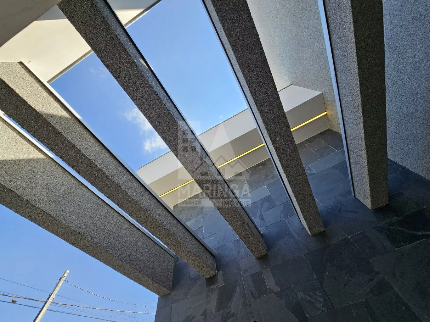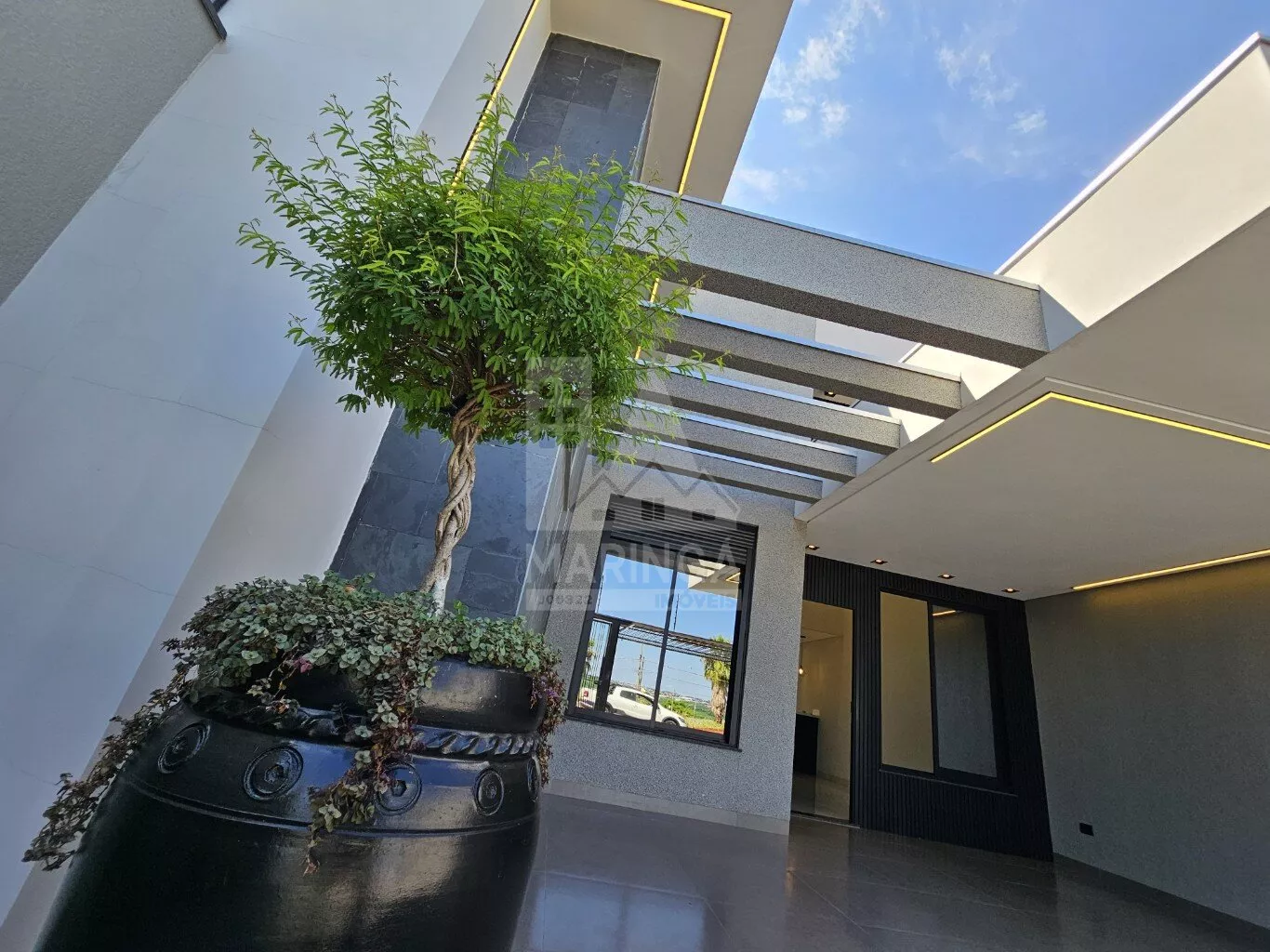 - Fachada com ripado moderno em alumínio;