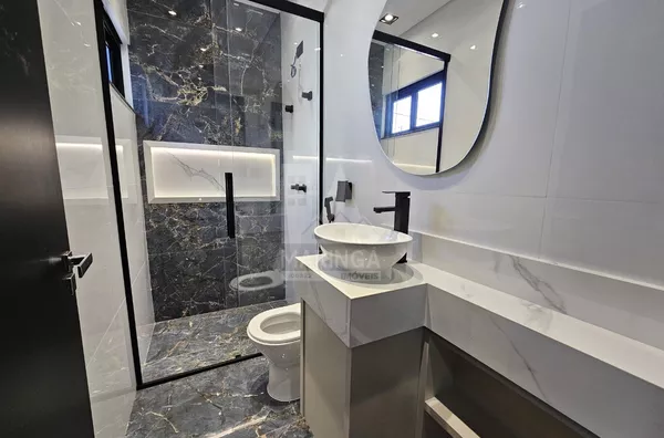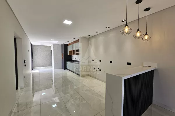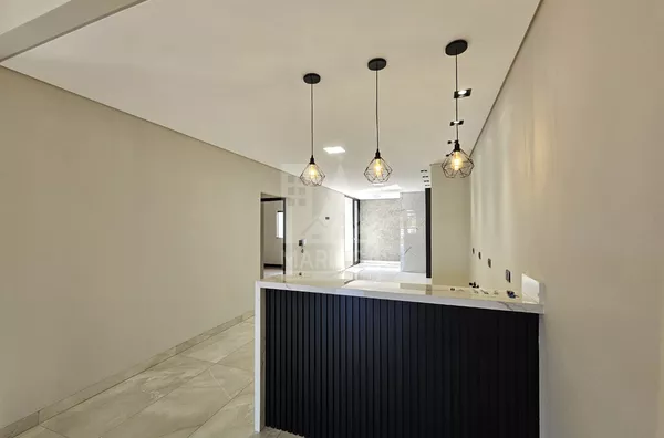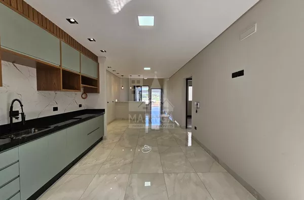 Casa NOVA recém finalizada para venda, com 3 quartos amplos sendo 1 suíte, sala com pé direito alto integrada com a cozinha, área gourmet e 2 vagas de garagem paralelas cobertas.