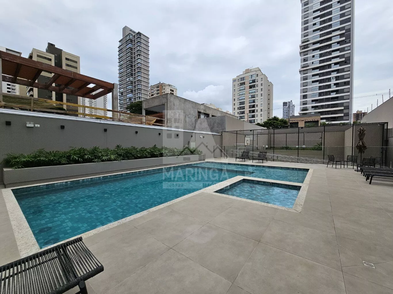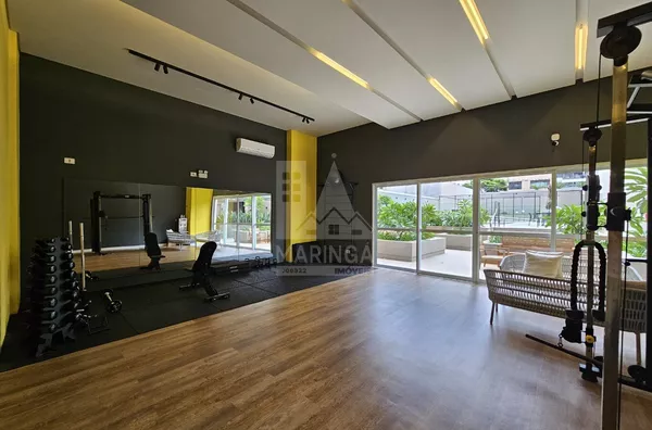 O apartamento com 1 suíte, ambientes integrados e sacada com churrasqueira com uma vista para o Parque do Ingá!