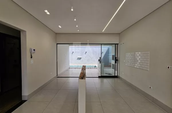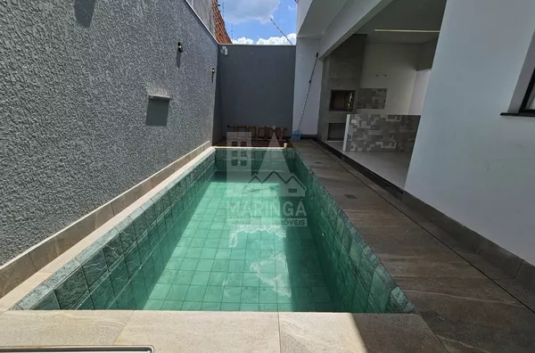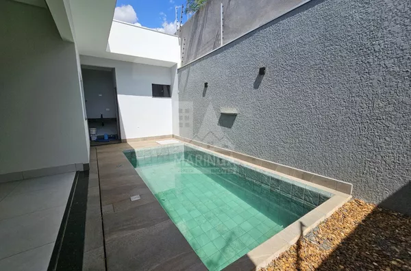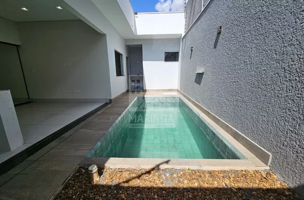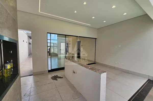 Casa nova para venda, com excelente integrações de ambientes, contando com 3 quartos (1 suíte com closet), sala ampla com pé direito alto, cozinha integrada, área gourmet, piscina, corredor lateral e ampla garagem para 2 carros.