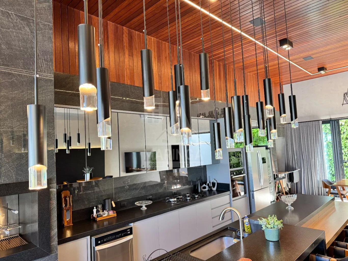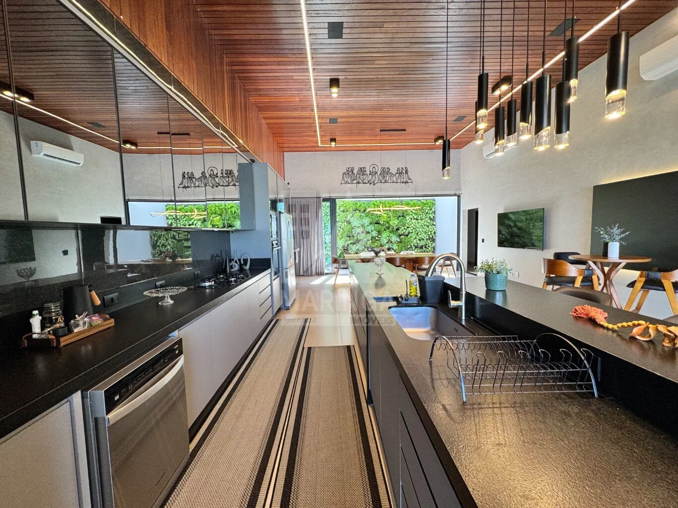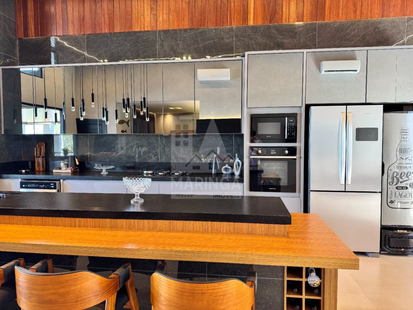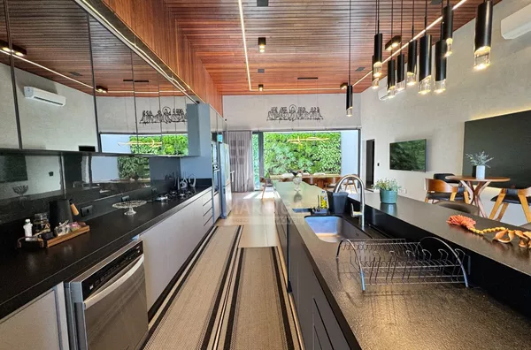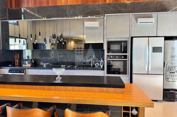 - 2 TVs, forno, micro-ondas, máquina de lavar roupas, lavadora de louças com 14 ciclos, cervejeira, geladeira com 3 portas
