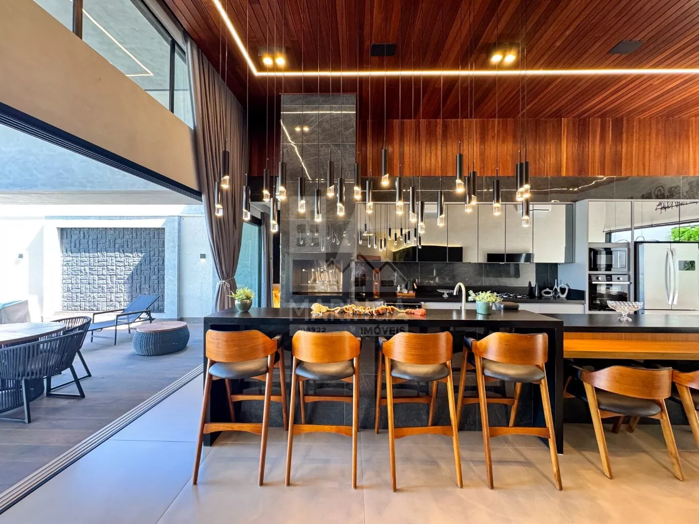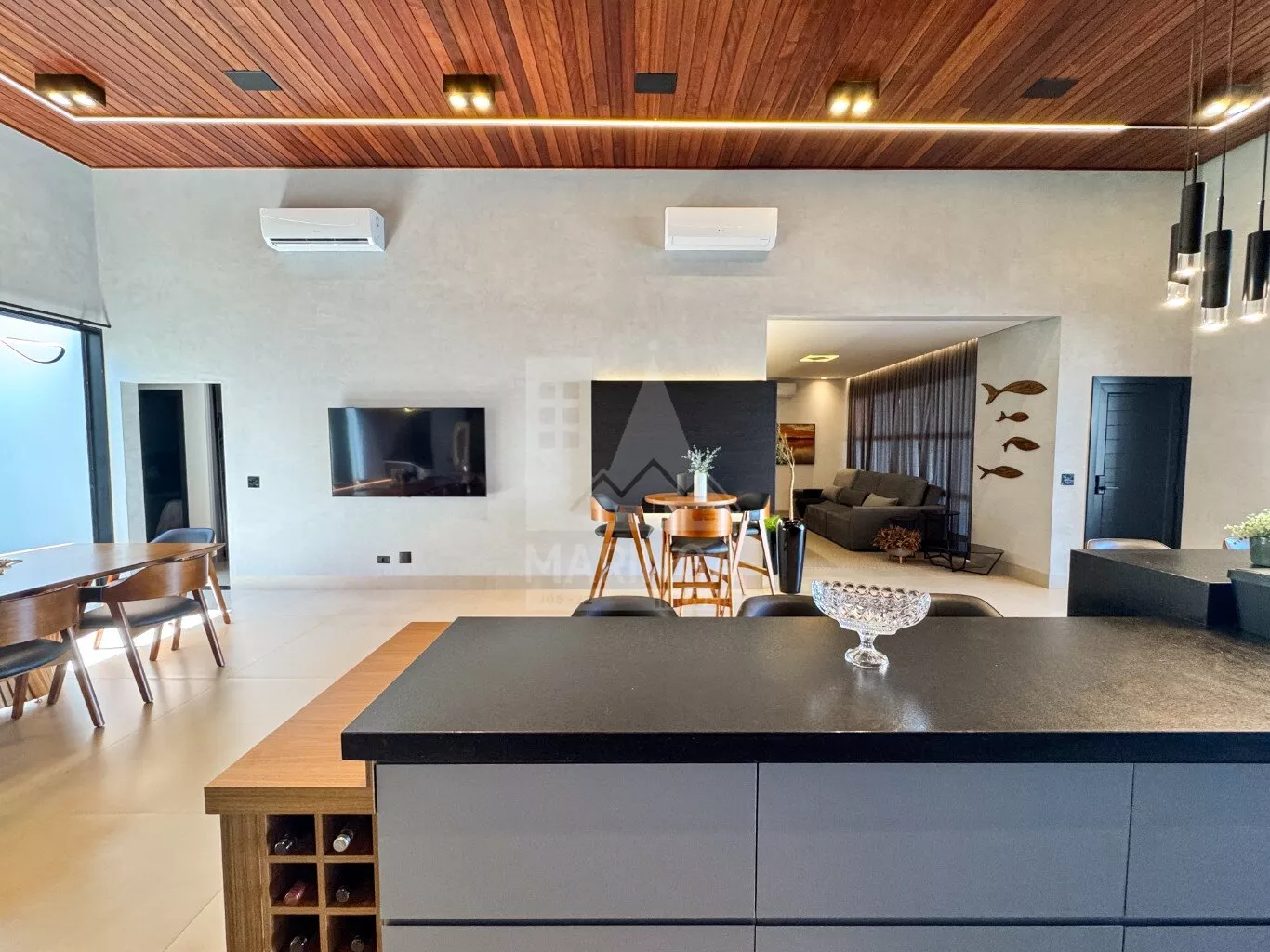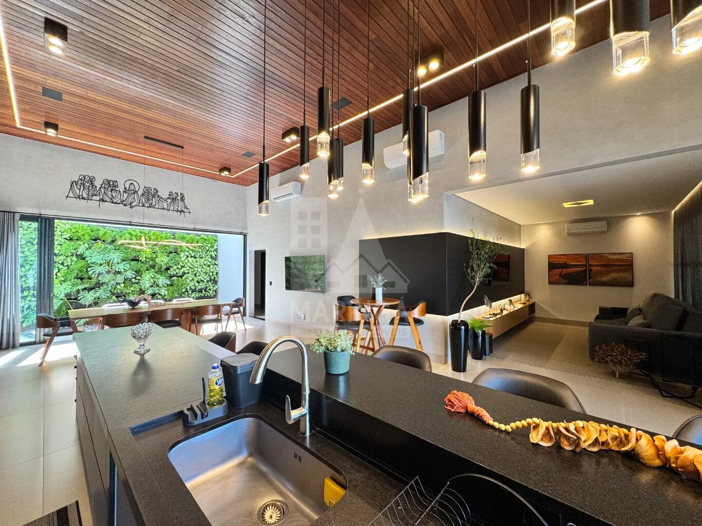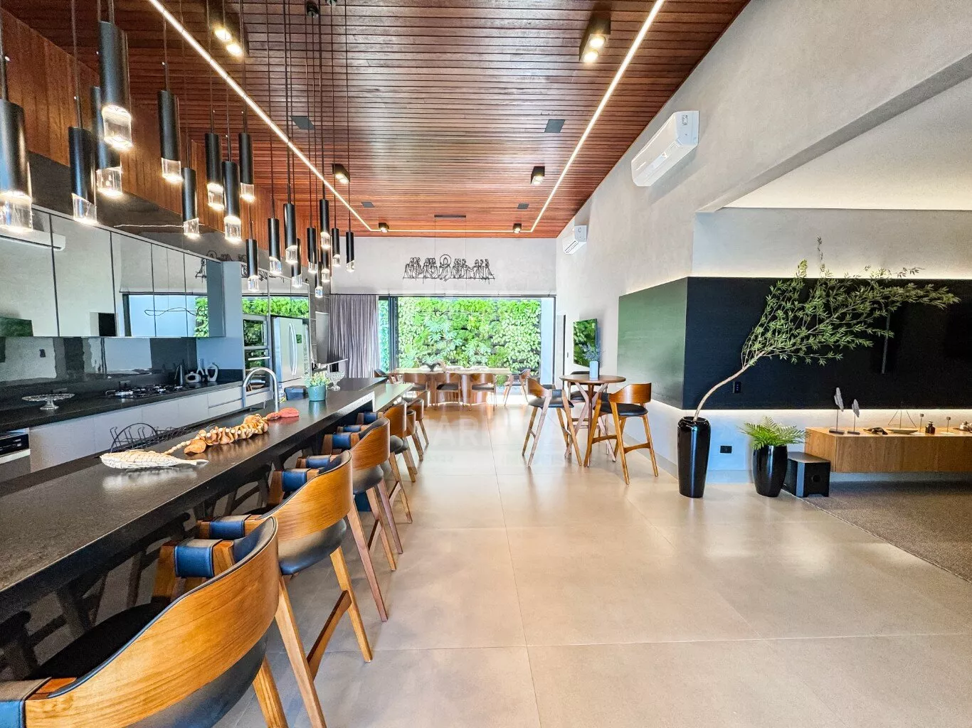 - 2 TVs, forno, micro-ondas, máquina de lavar roupas, lavadora de louças com 14 ciclos, cervejeira, geladeira com 3 portas