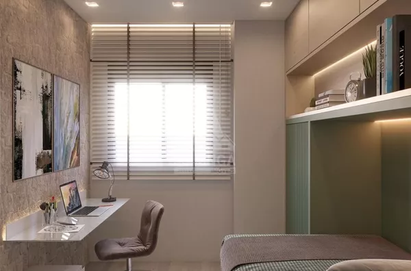 - Piso vinílico nos quartos, garantindo conforto térmico e acústico