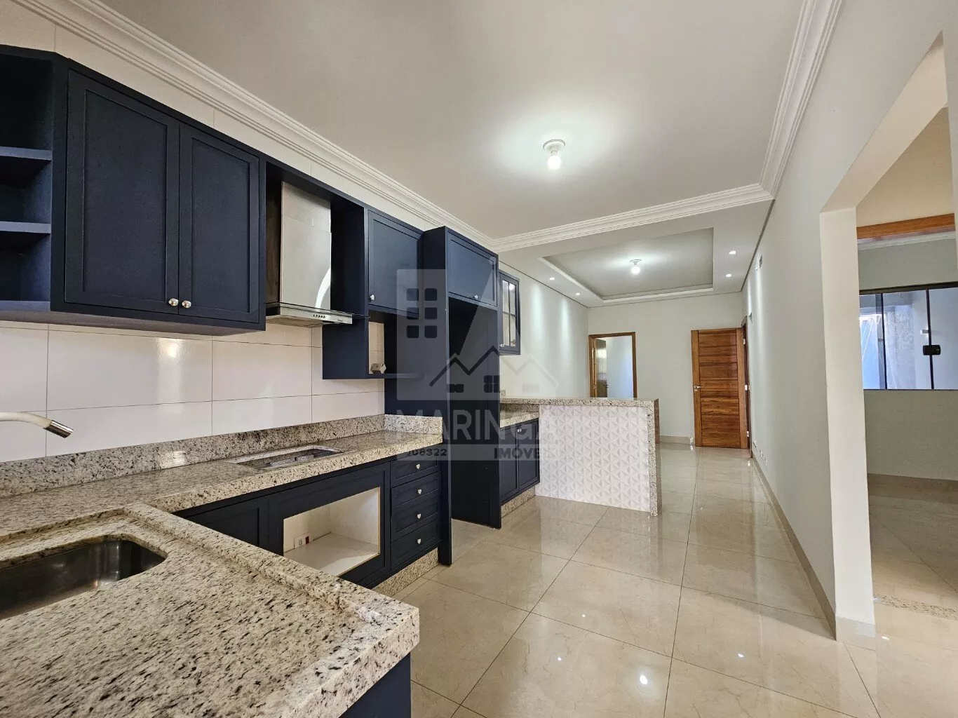Casa para venda com 3 quartos sendo 1 suíte, sala integrada com a cozinha, cozinha mobiliada e 2 vagas de garagem.