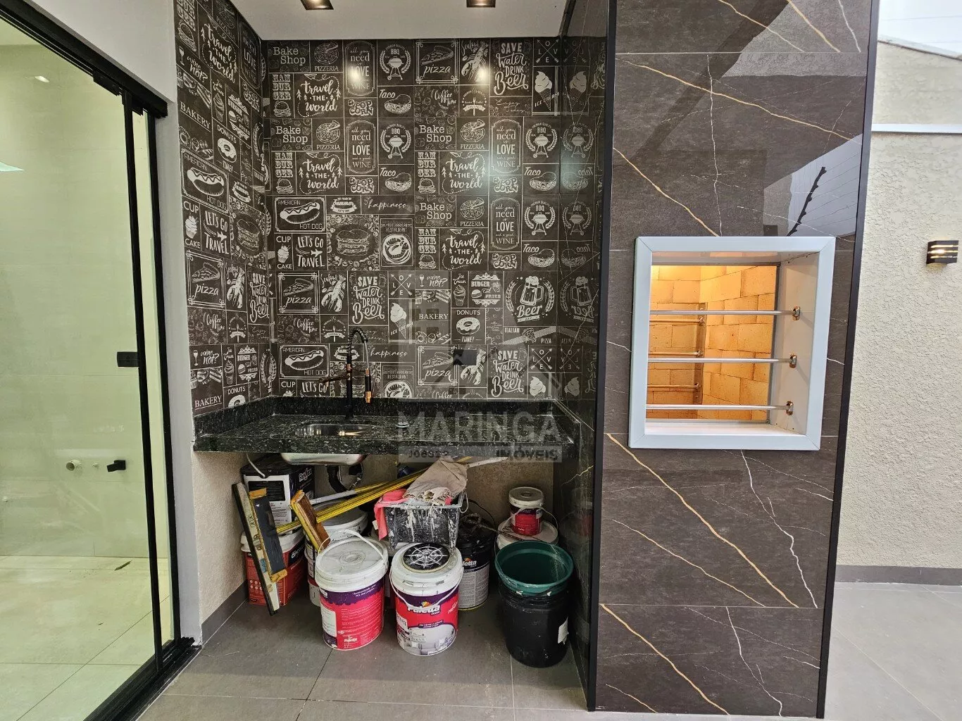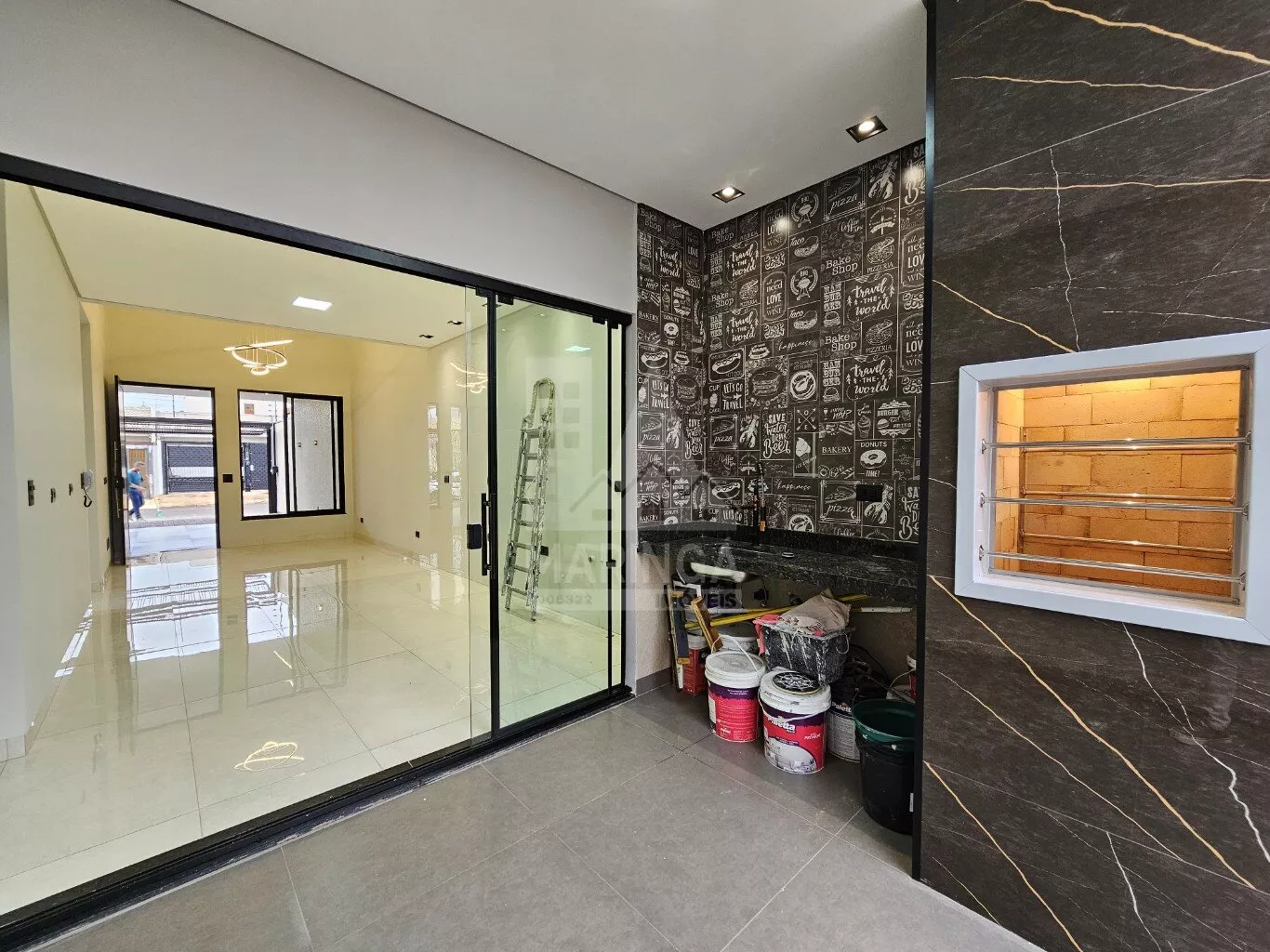 - Churrasqueira em porcelanato com acabamento em inox;