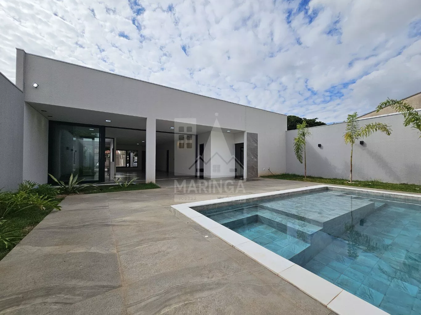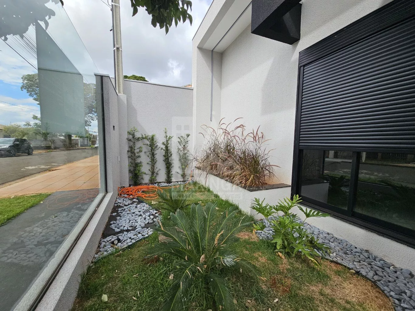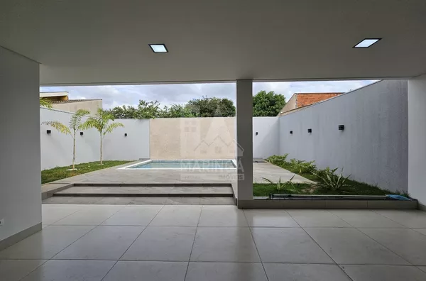 Casa NOVA para venda com excelente integração de ambientes e ótima localização, contando com 3 suítes, sala de TV, Estar e Jantar integradas, cozinha gourmet, varanda, piscina, 3 vagas de garagem, acesso lateral, jardins com paisagismo, e muito outros detalhes.