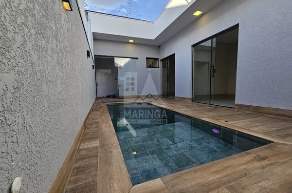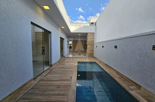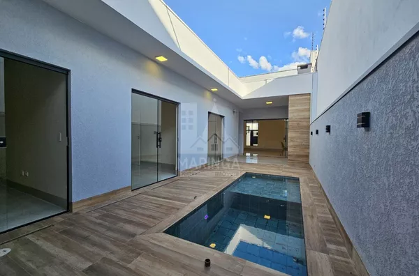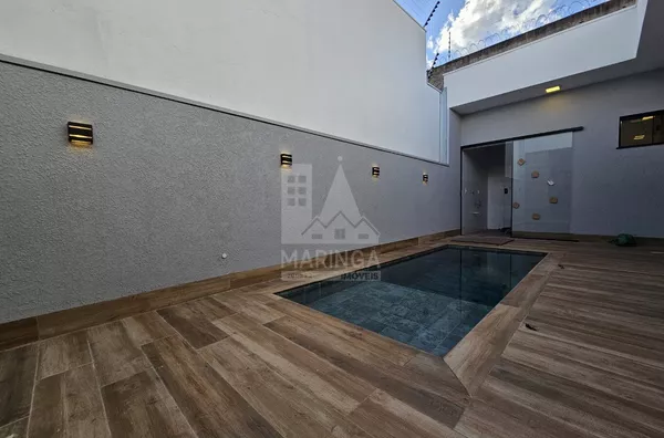 Casa NOVA com PISCINA em ótima localização para venda contando com 3 quartos sendo 1 suíte, sala de 2 ambientes com pé direito, cozinha integrada, piscina, 2 vagas de garagem cobertas.