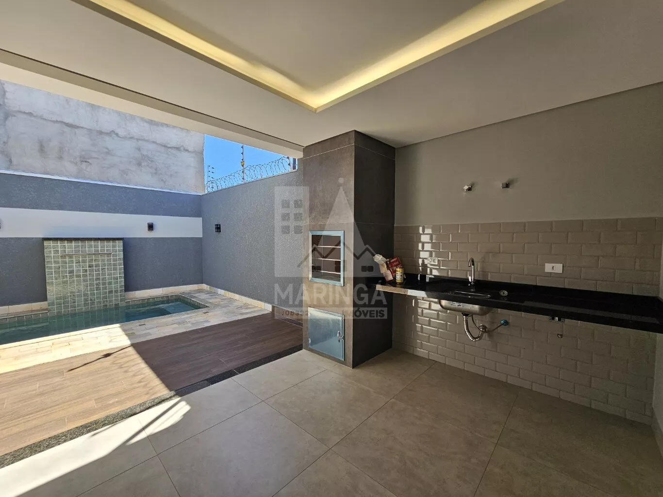 - Churrasqueira em porcelanato com acabamento em inox;