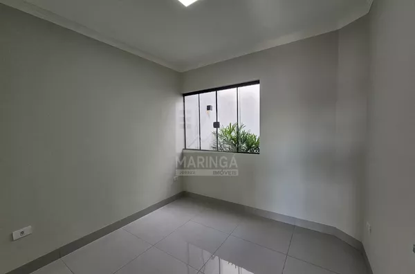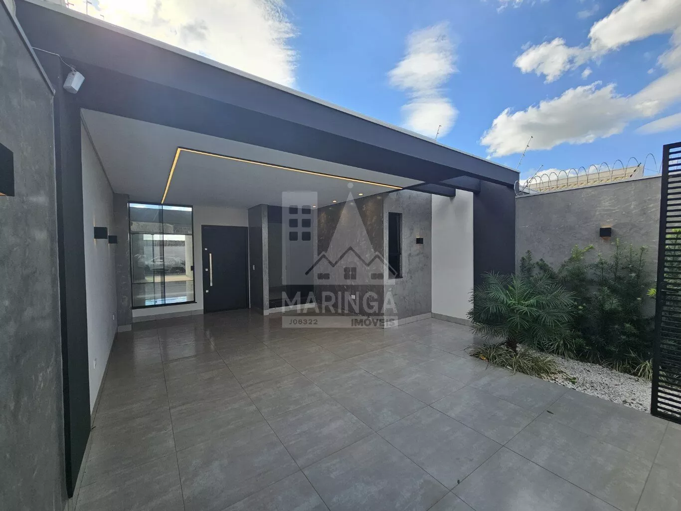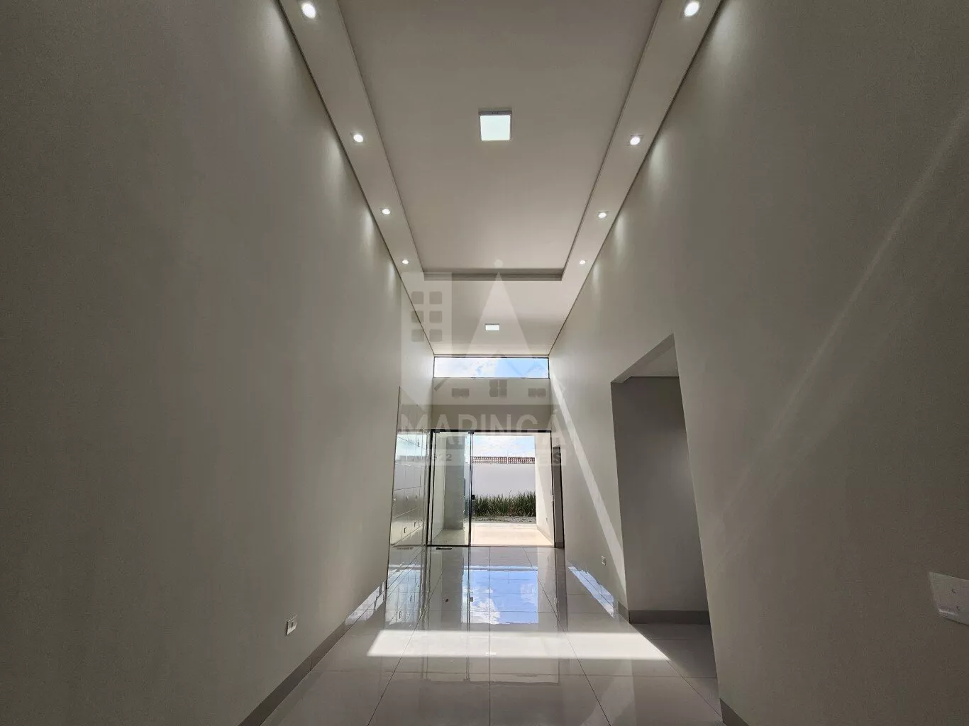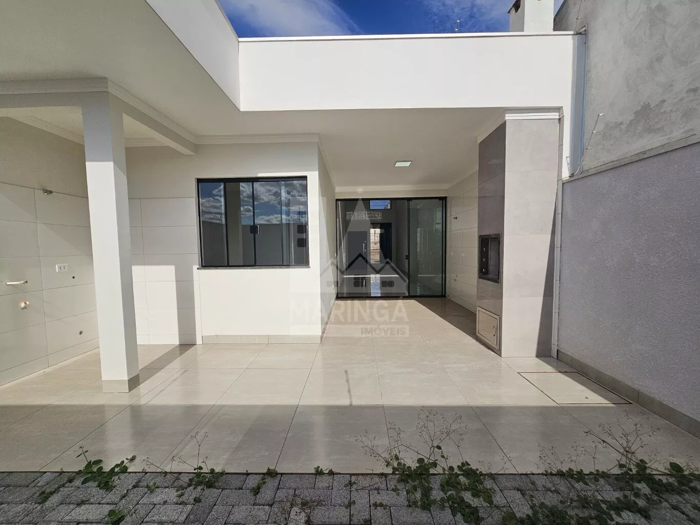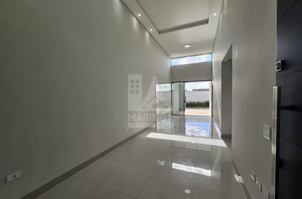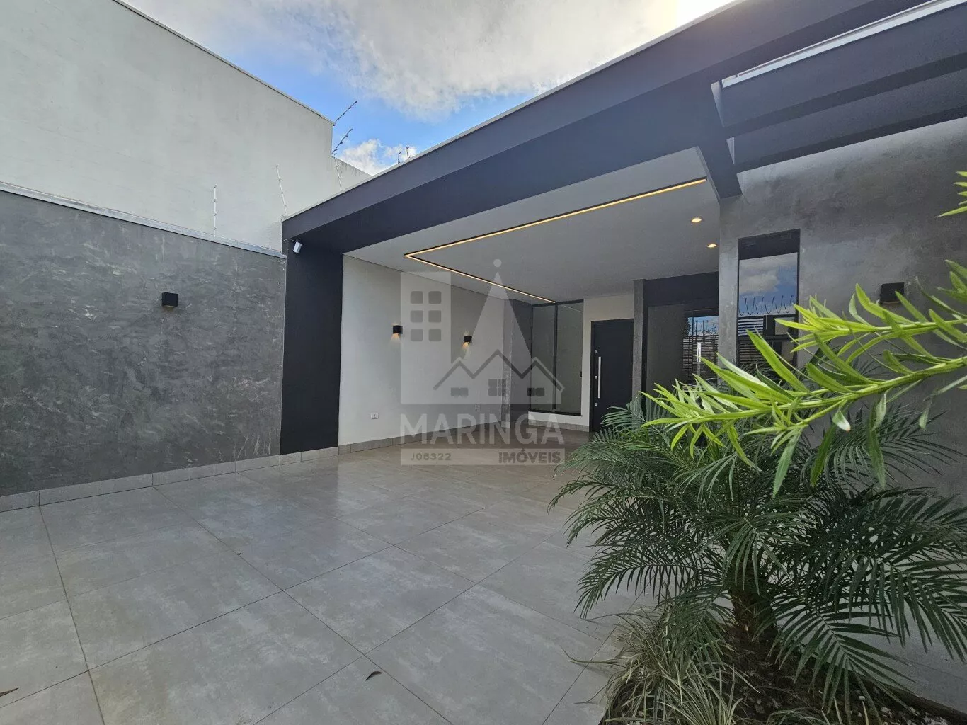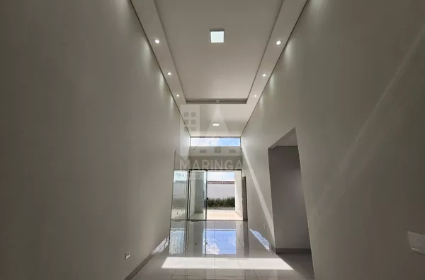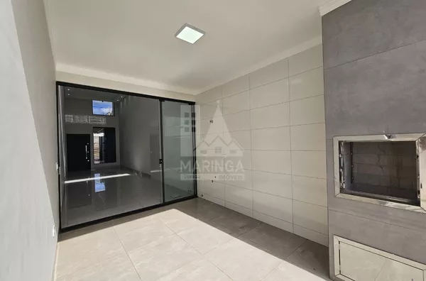 Casa NOVA para venda em Maringá PR, contando com 3 quartos sendo 1 suíte, 2 vagas de garagem paralelas coberta, sala de 2 ambientes com pé direito alto, cozinha integrada, área gourmet.