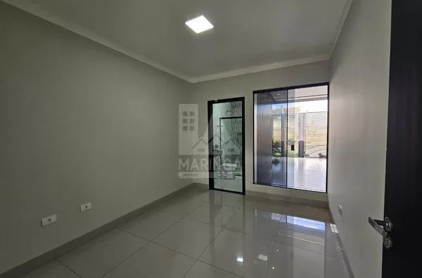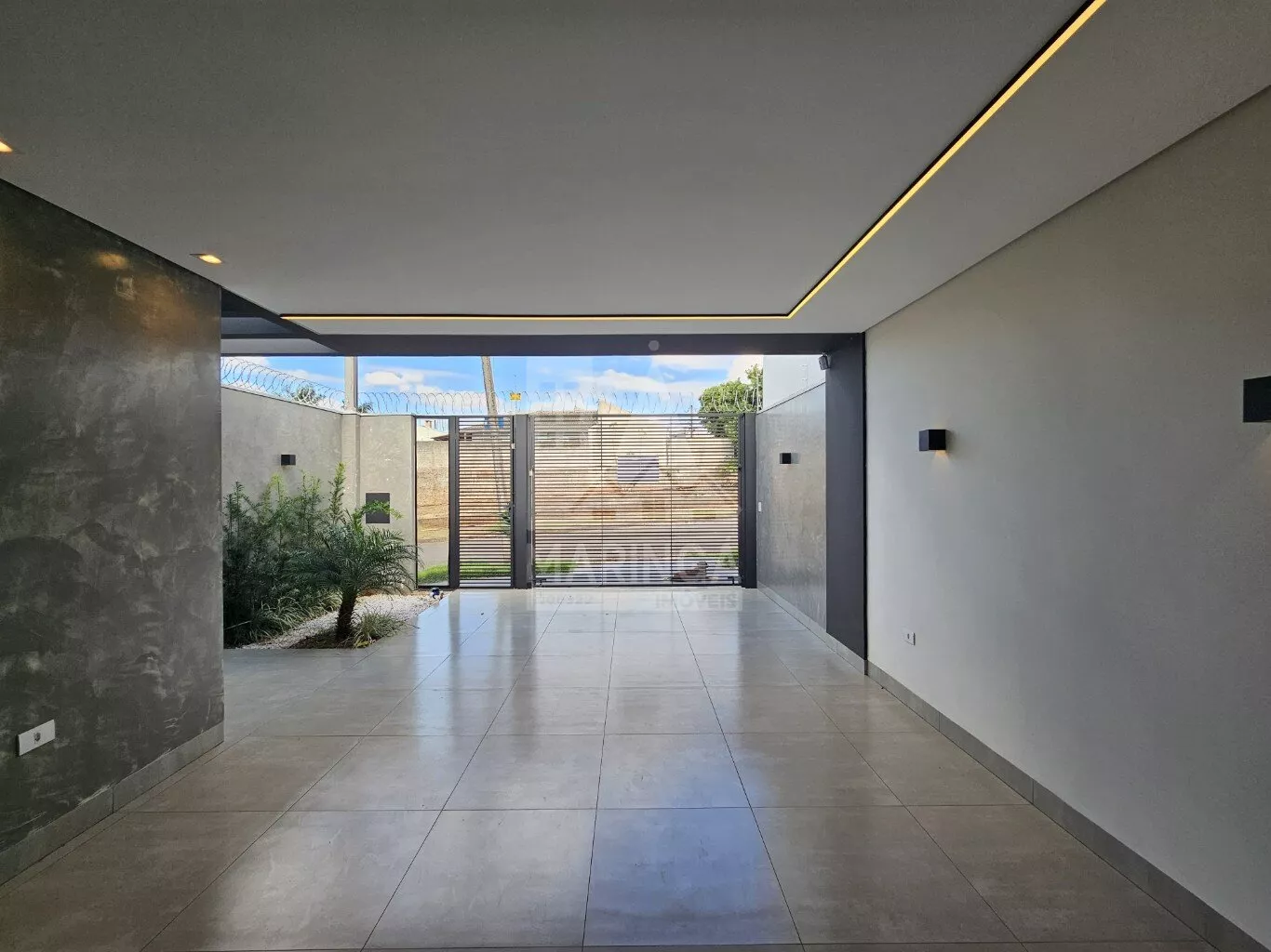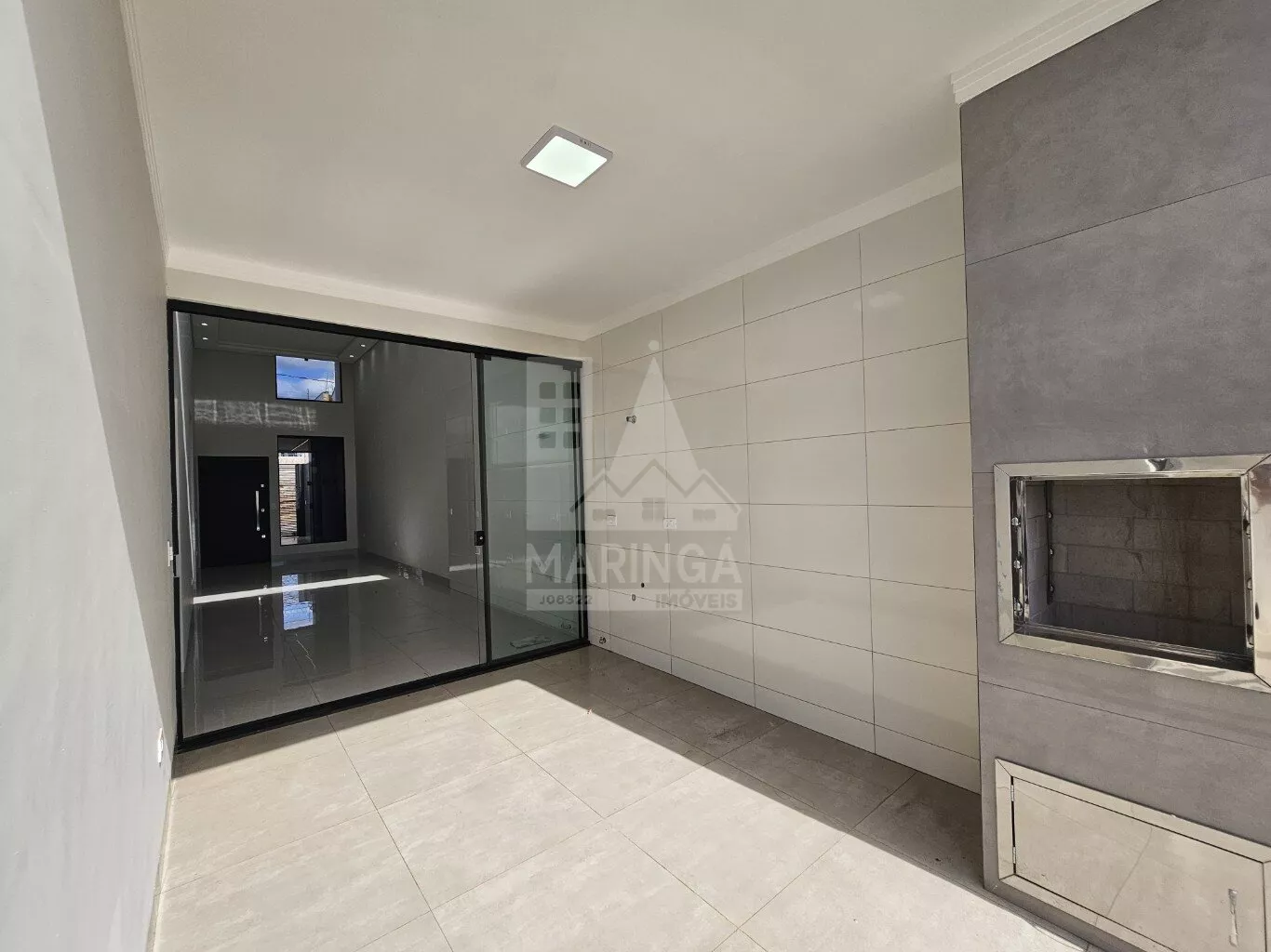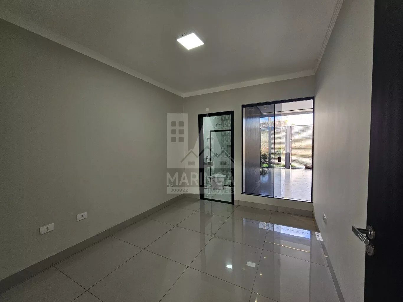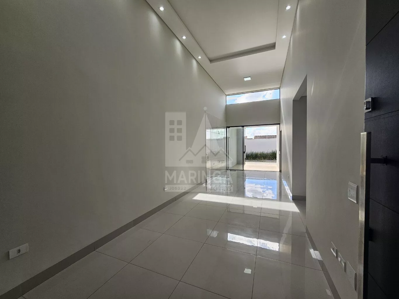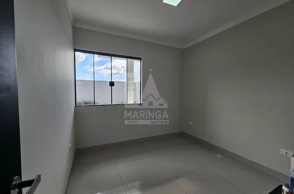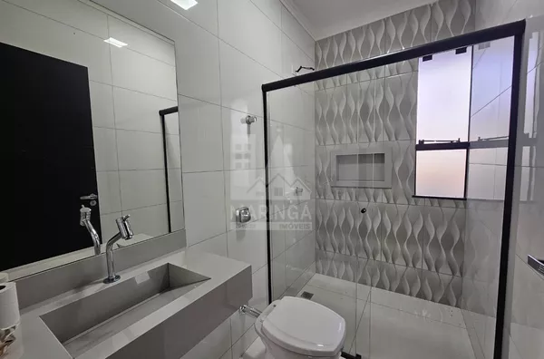 Casa NOVA para venda em Maringá PR, contando com 3 quartos sendo 1 suíte, 2 vagas de garagem paralelas coberta, sala de 2 ambientes com pé direito alto, cozinha integrada, área gourmet.