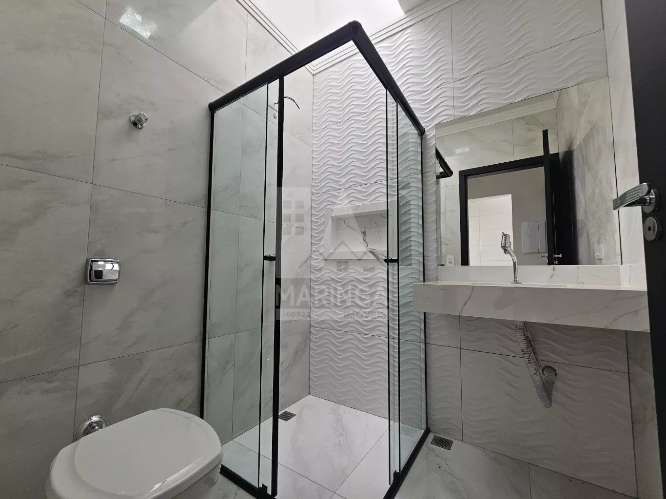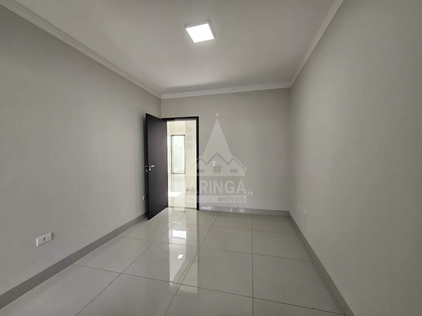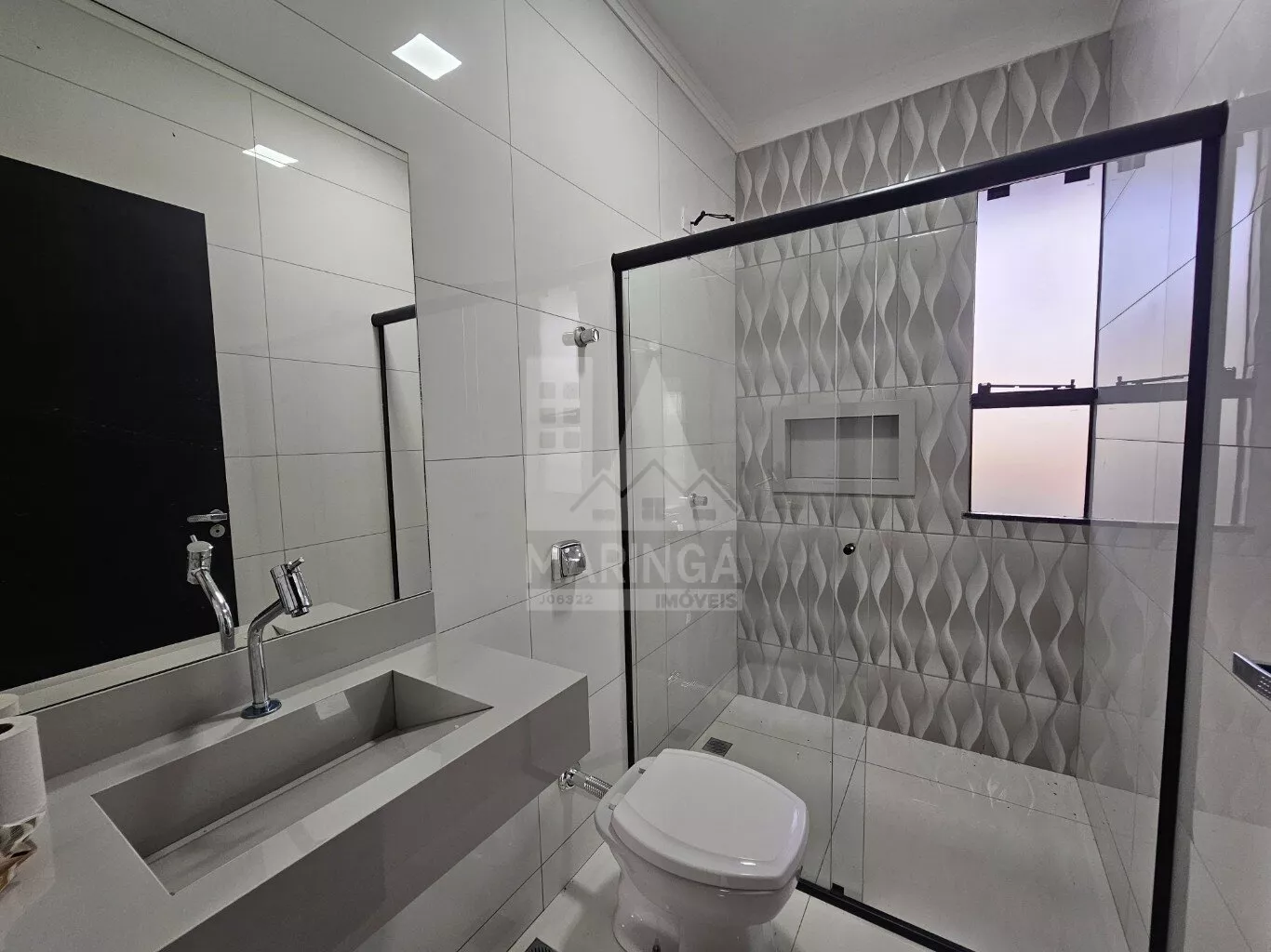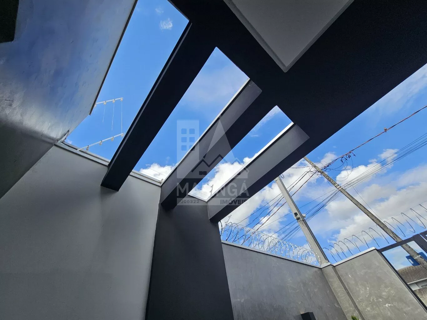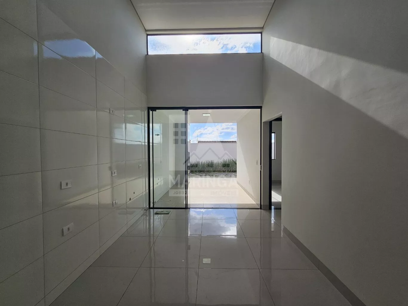 Casa NOVA para venda em Maringá PR, contando com 3 quartos sendo 1 suíte, 2 vagas de garagem paralelas coberta, sala de 2 ambientes com pé direito alto, cozinha integrada, área gourmet.