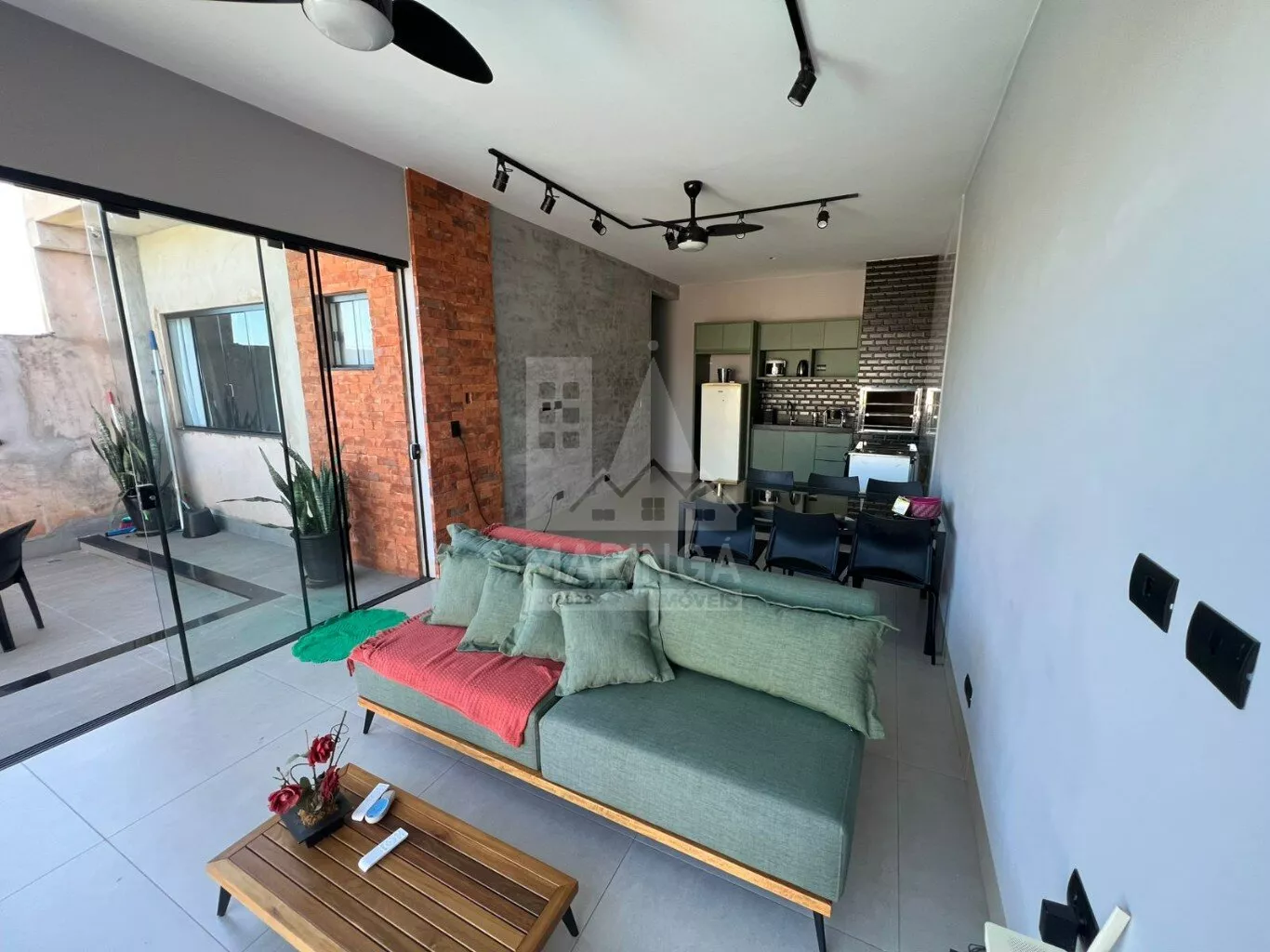 - Área gourmet integrada com a sala, cozinha planejada com churrasqueira em acabamento em inox, mesa 4 cadeiras e sofá mobly.