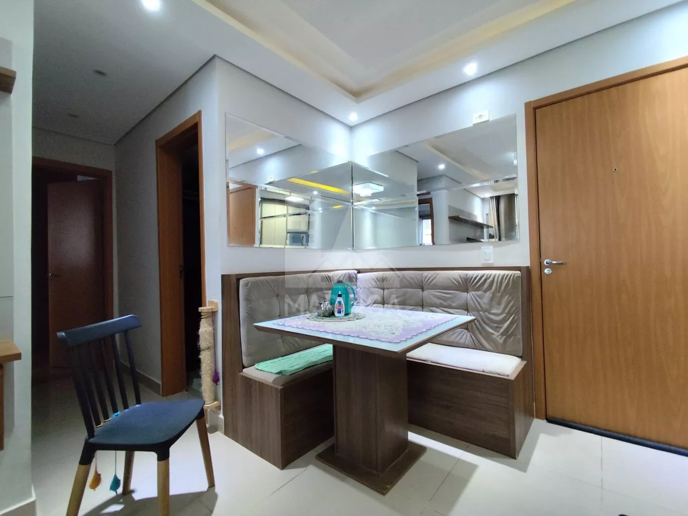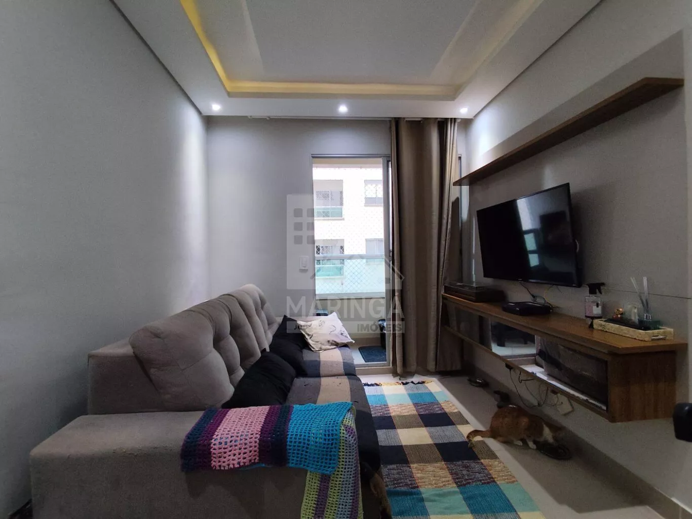 Apartamento mobiliado com 2 quartos sendo 1 suíte, sacada gourmet, 1 vaga de garagem coberta.