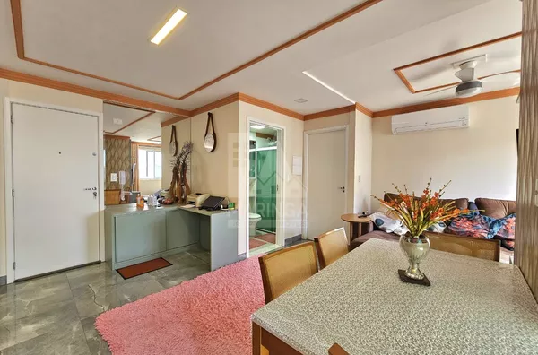 Apartamento MOBILIADO para venda, 7° andar, sol da manhã, sala ampla de 2 ambientes, sacada gourmet, 1 vaga de garagem coberta.