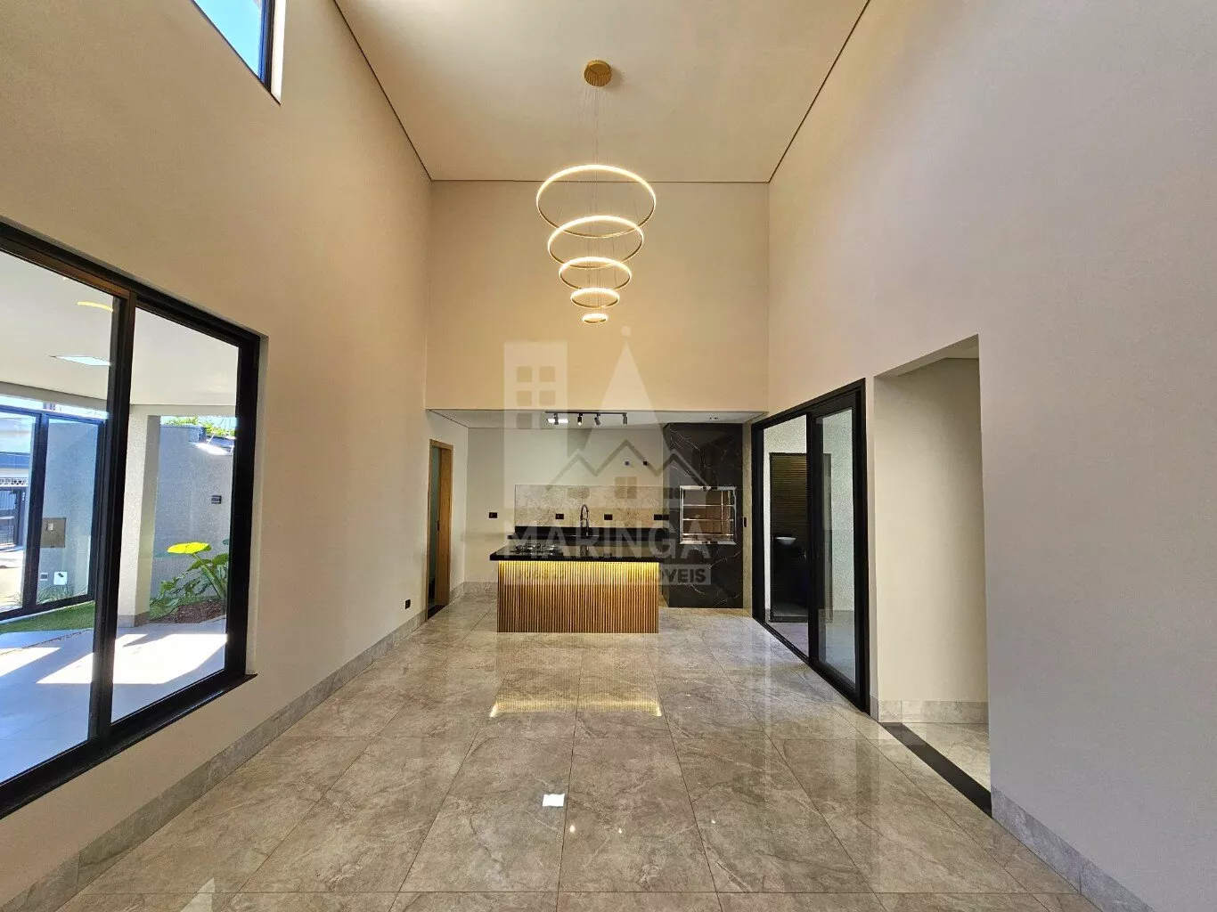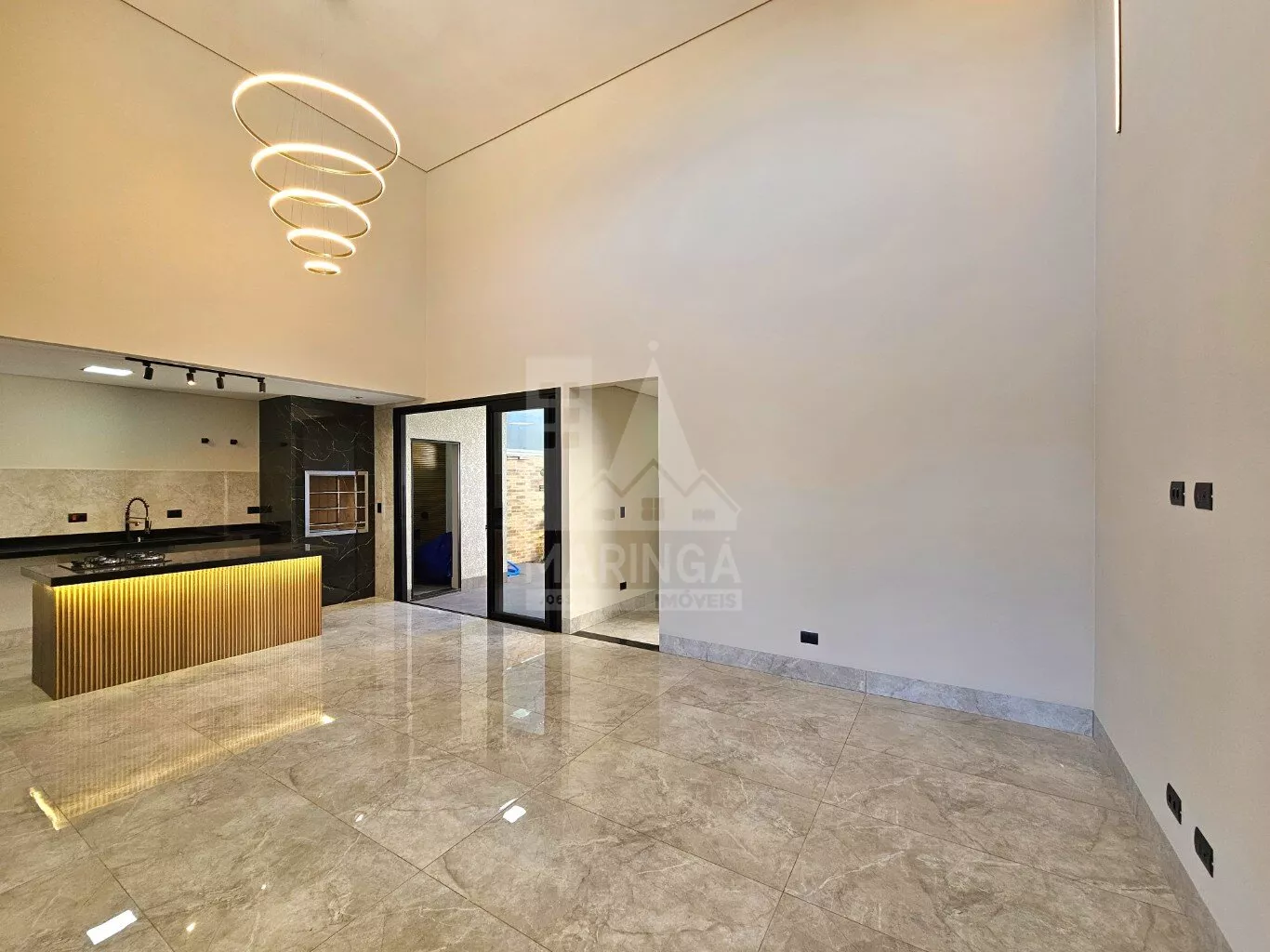 - Sala de 2 ambientes com pé direito duplo;