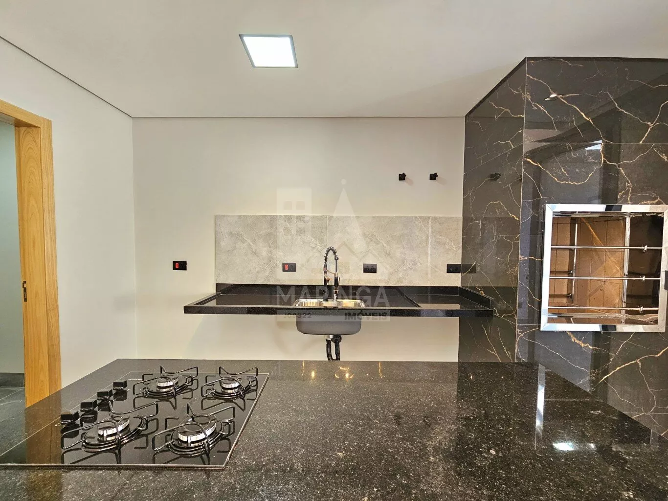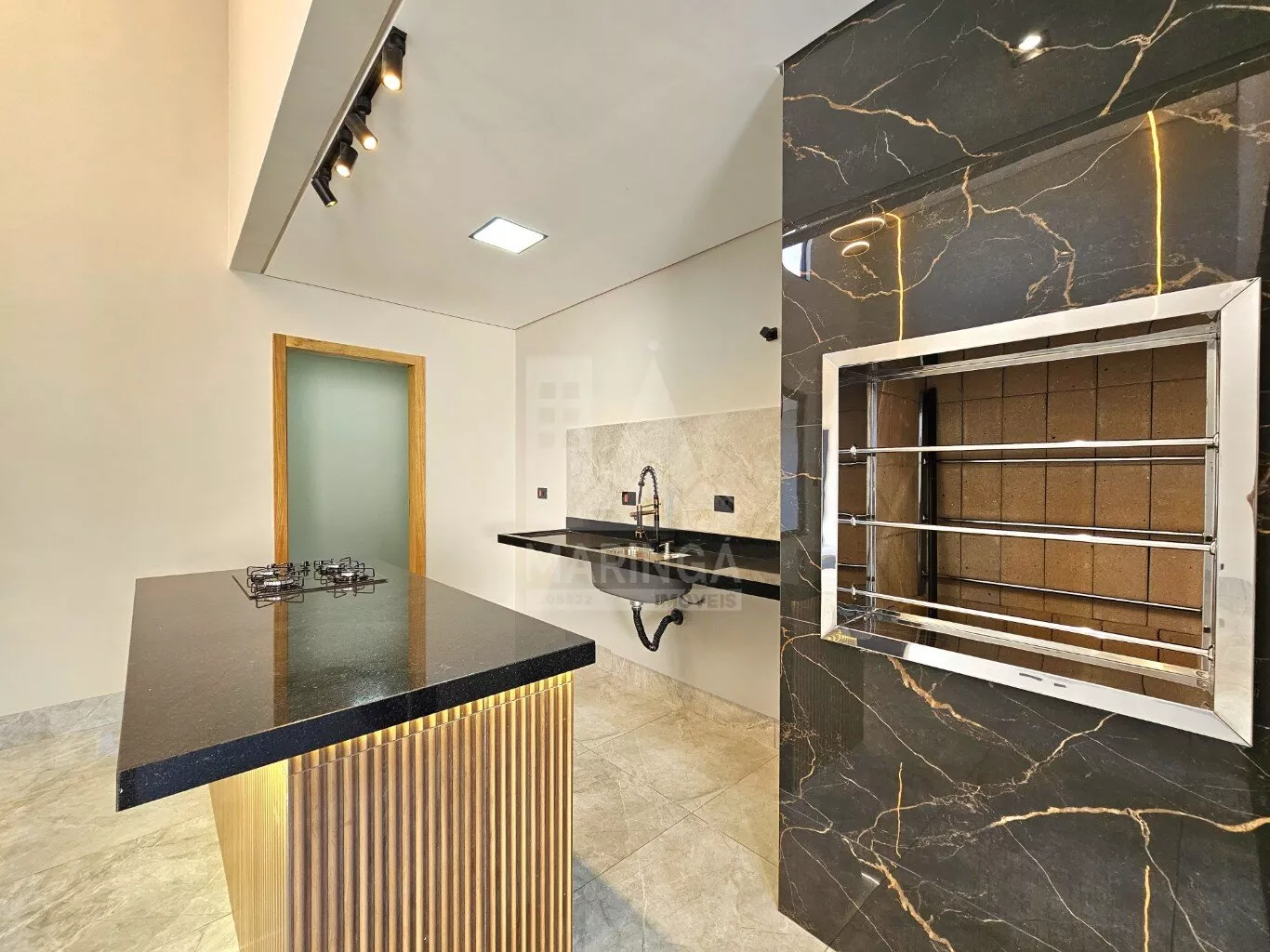 - Churrasqueira em porcelanato com acabamento em inox;
