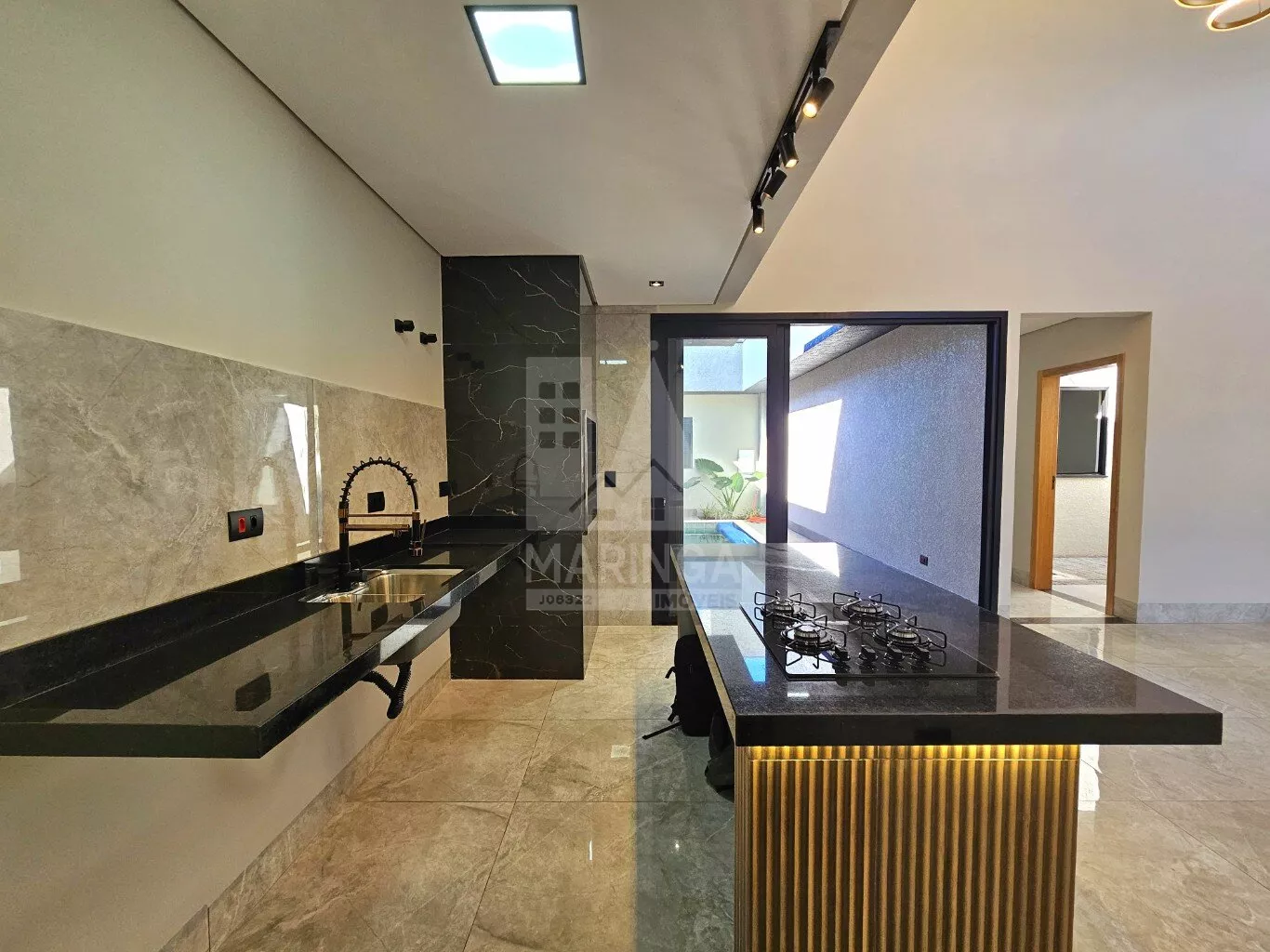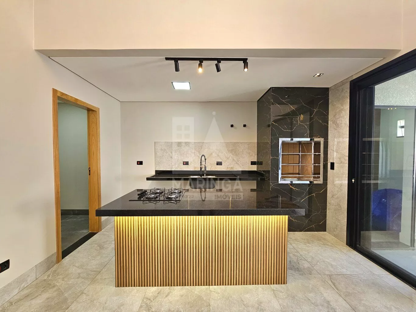 - Ilha com revestimento em porcelanato;