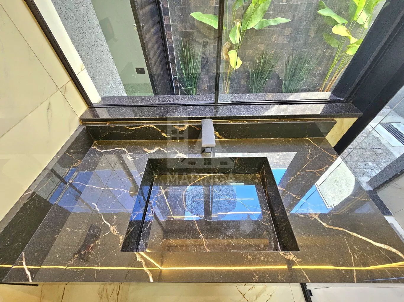- Pia em porcelanato esculpido;