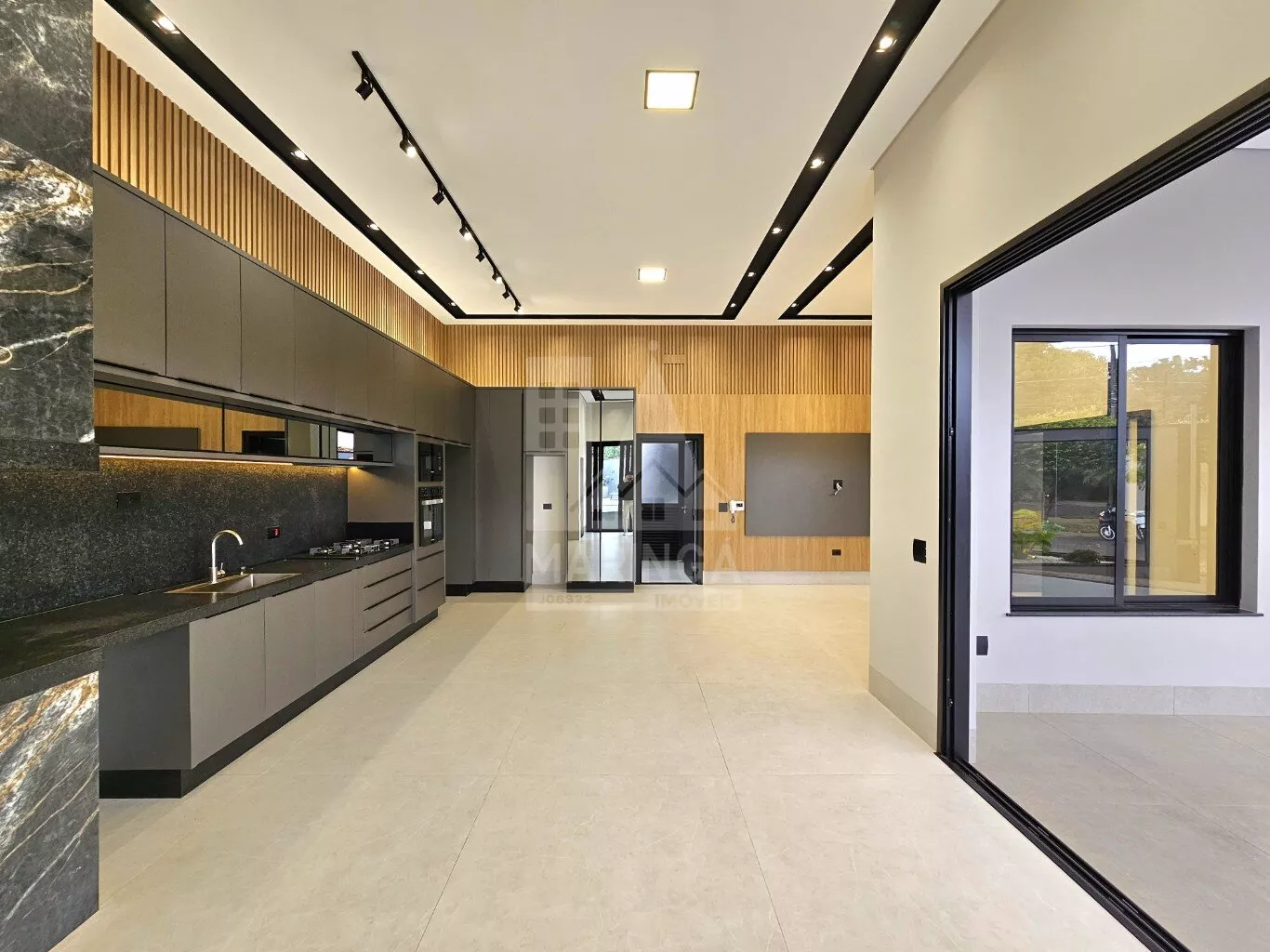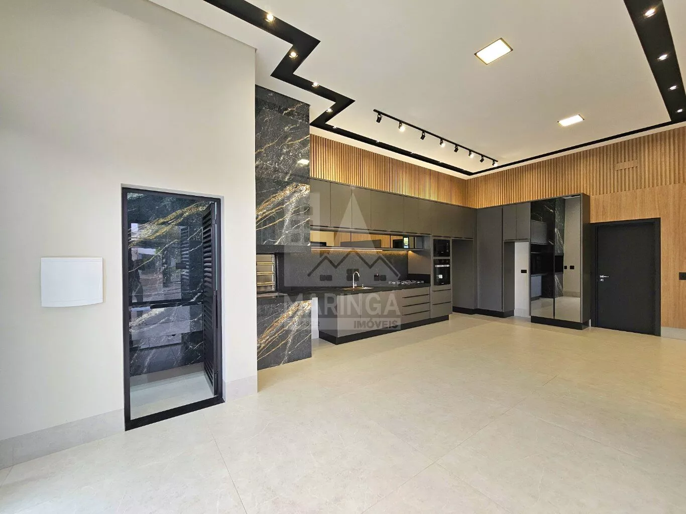 - Sala de estar, cozinha gourmet e copa integradas;