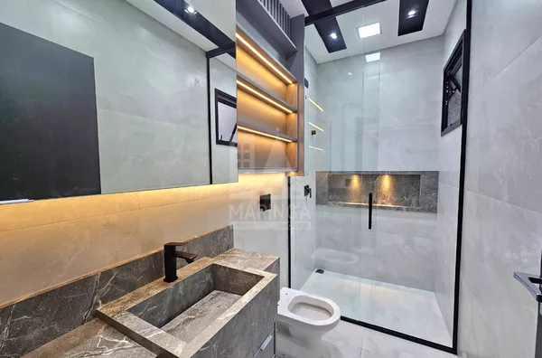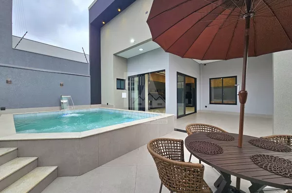 Casa NOVA a venda contando com Piscina Aquecida, 3 suítes, 4 vagas de garagem, Cozinha Gourmet, excelente integração de ambientes e incrível área de lazer.