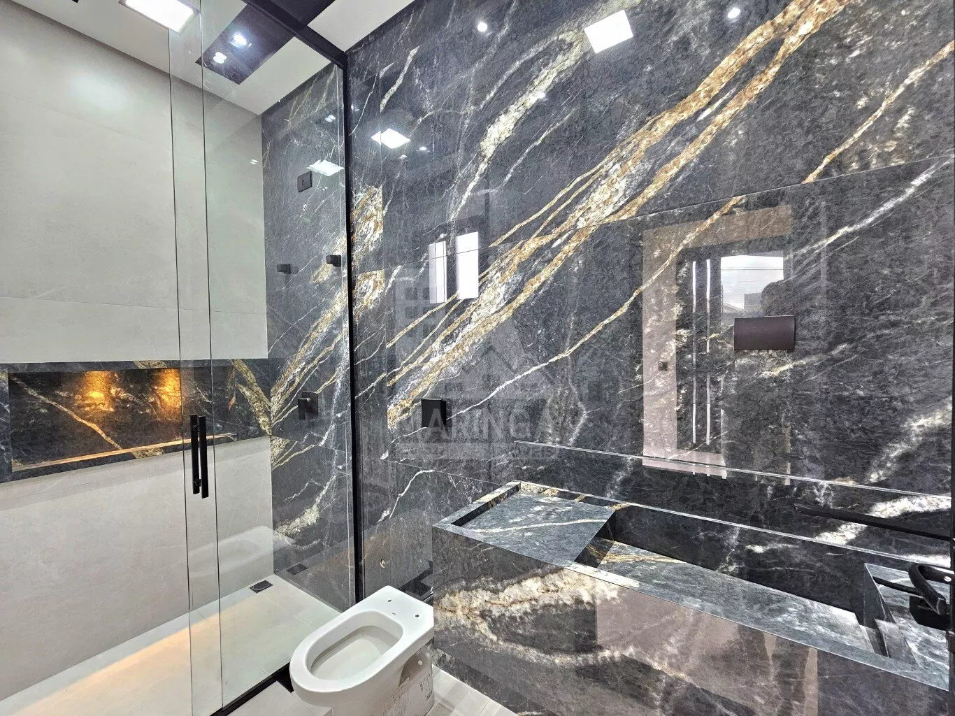 - Box em vidro até o teto;