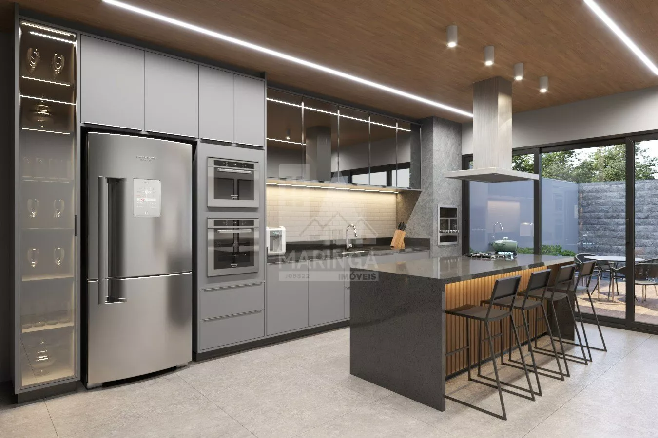 - Cozinha com ilha e móveis planejados