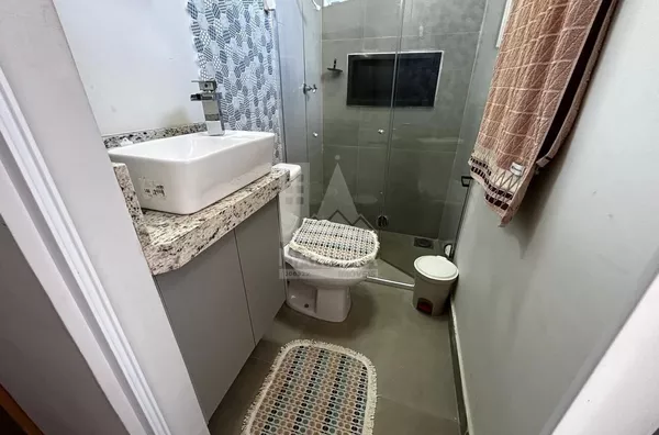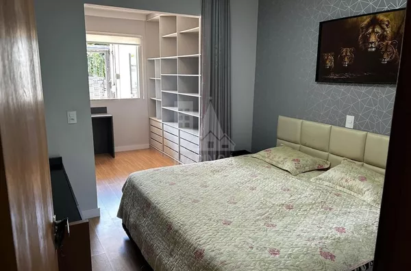 - Casa com pisos em porcelanato, e laminado nas suítes;