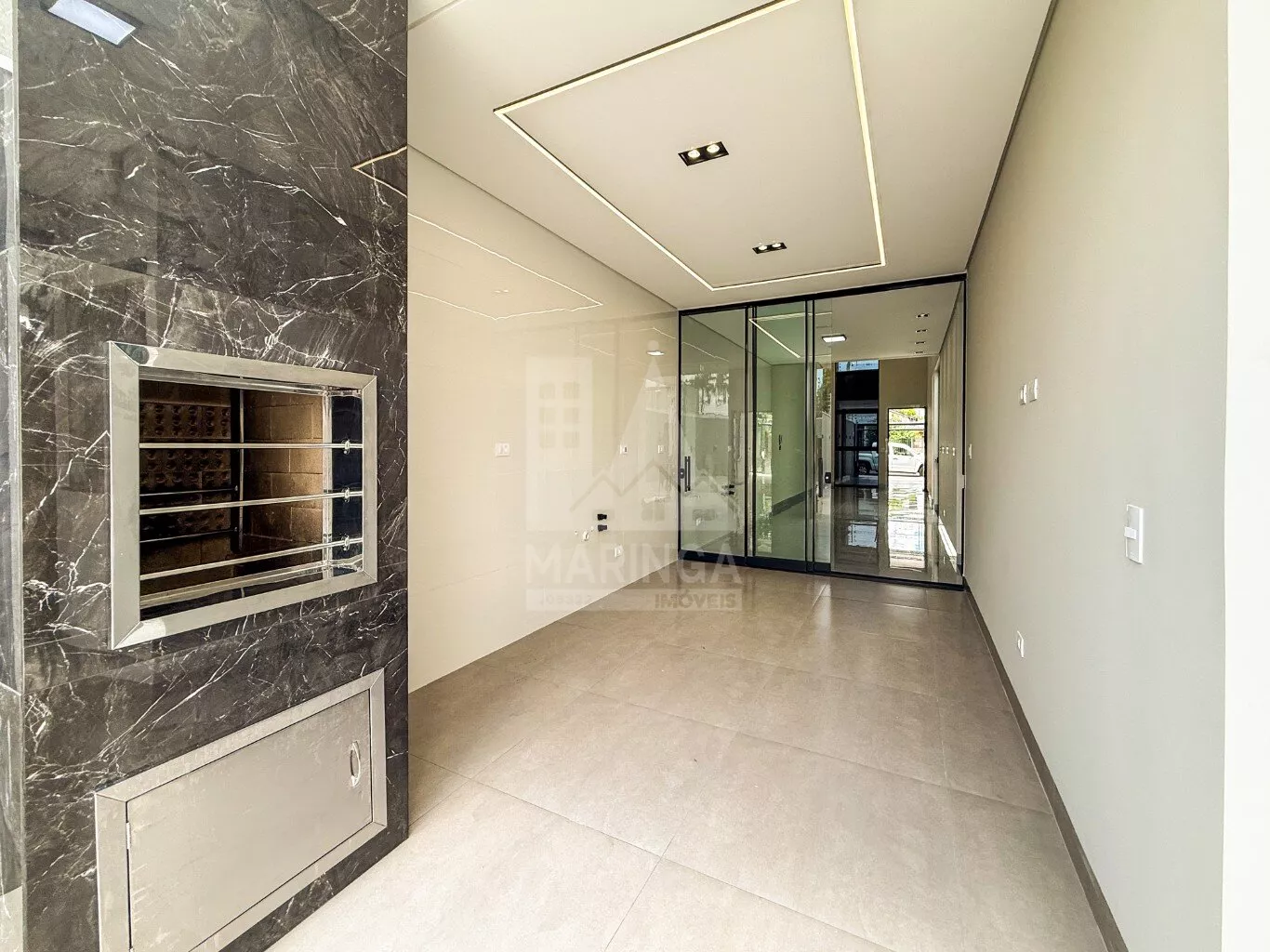 - Churrasqueira em porcelanato com acabamento em inox;