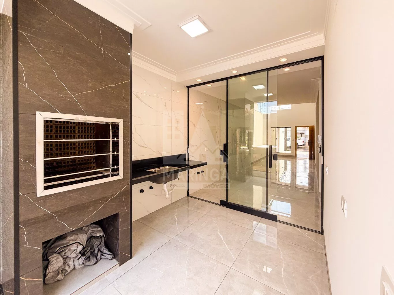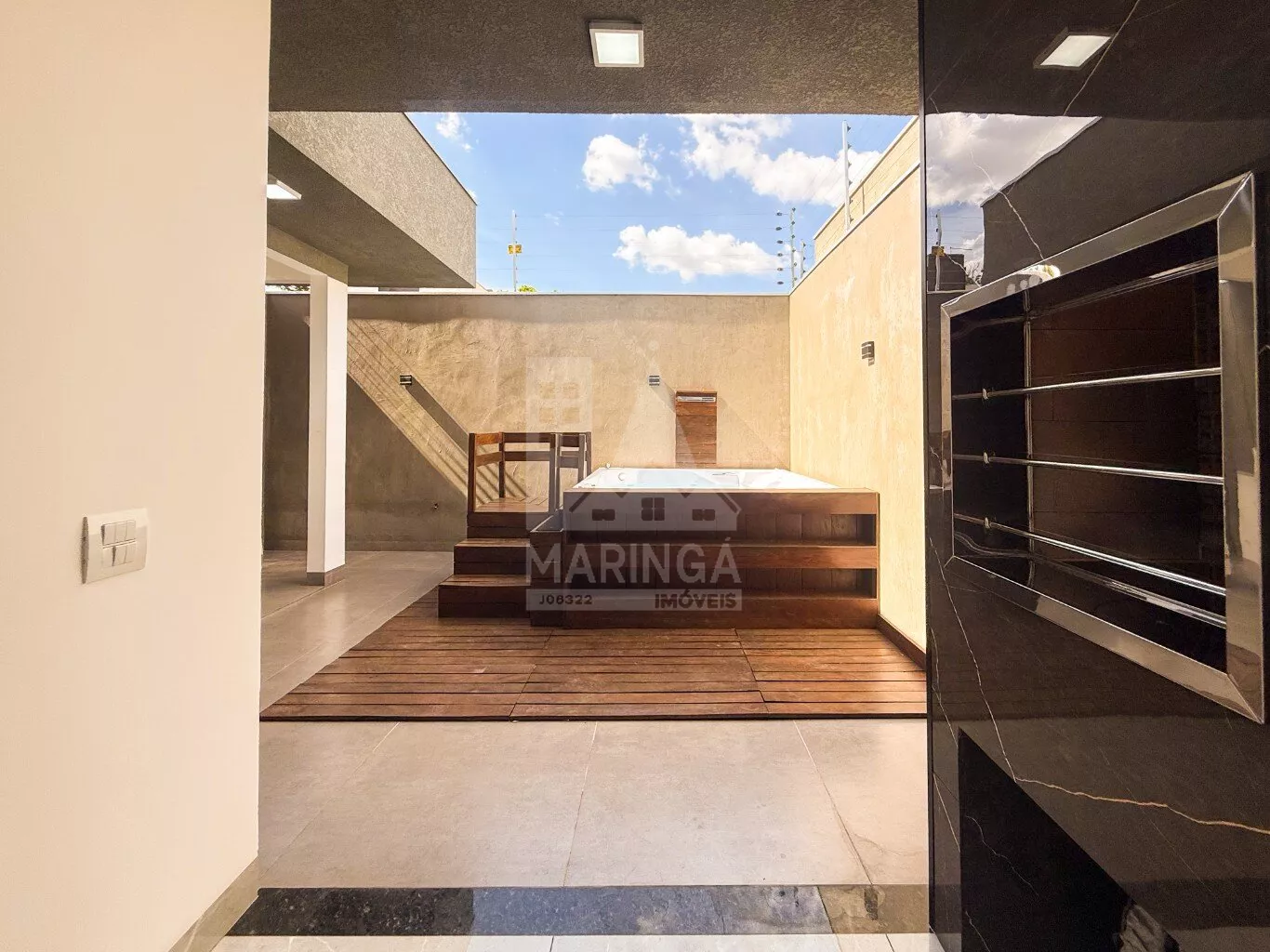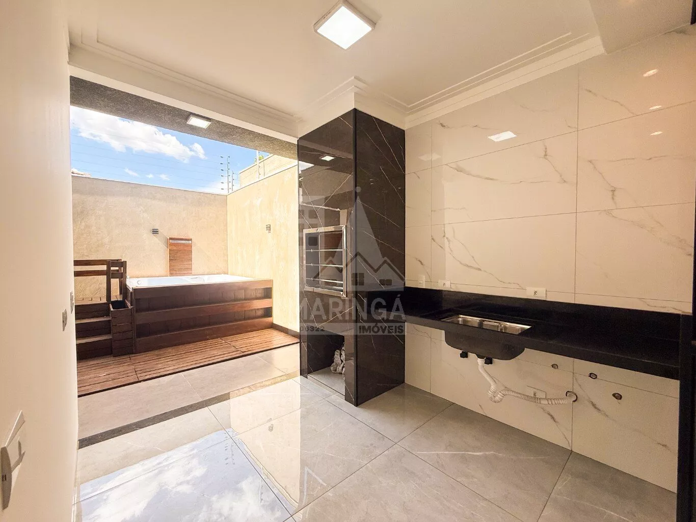 - Churrasqueira em porcelanato com acabamento em inox;
