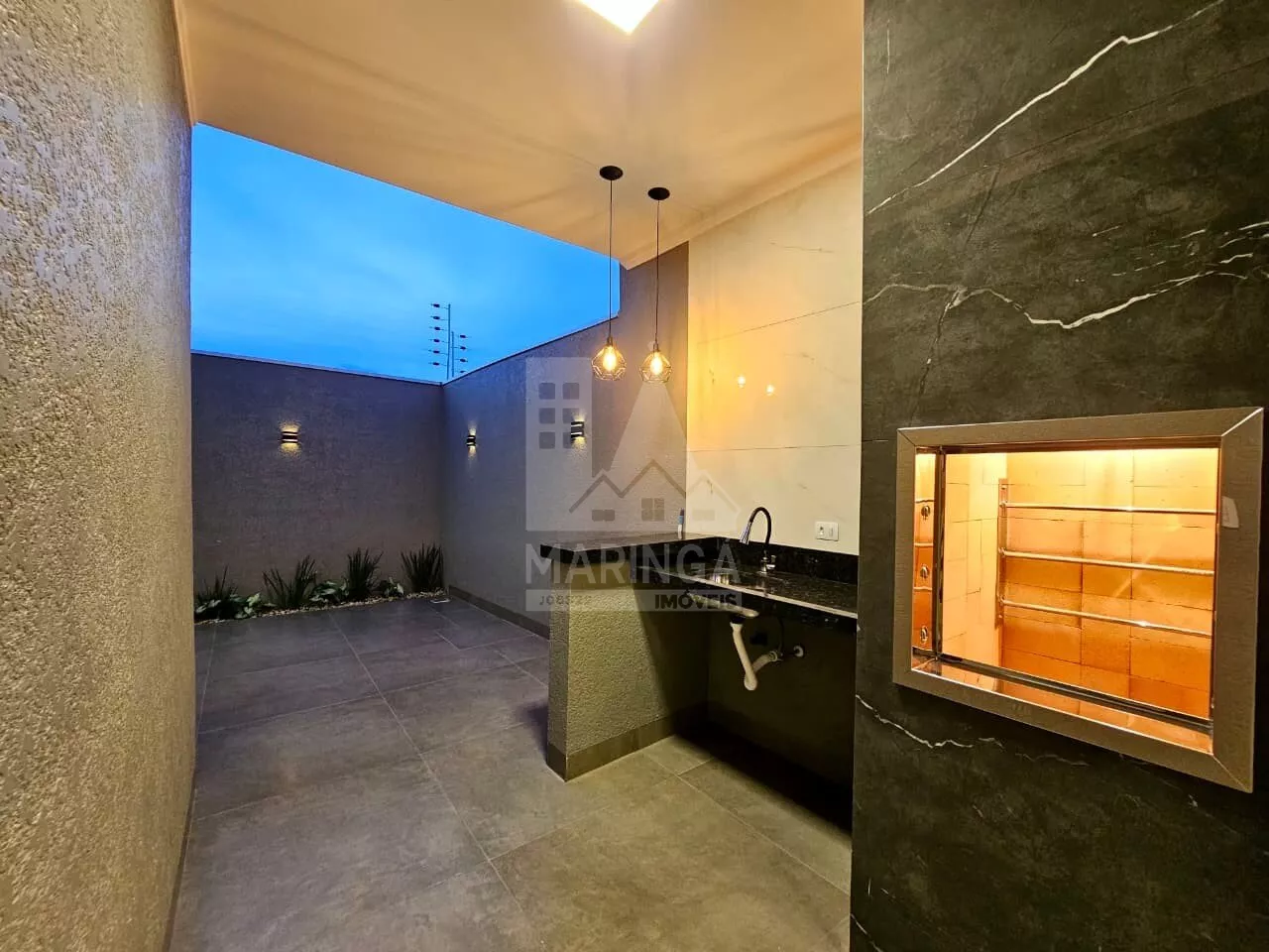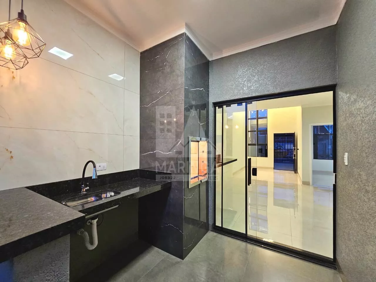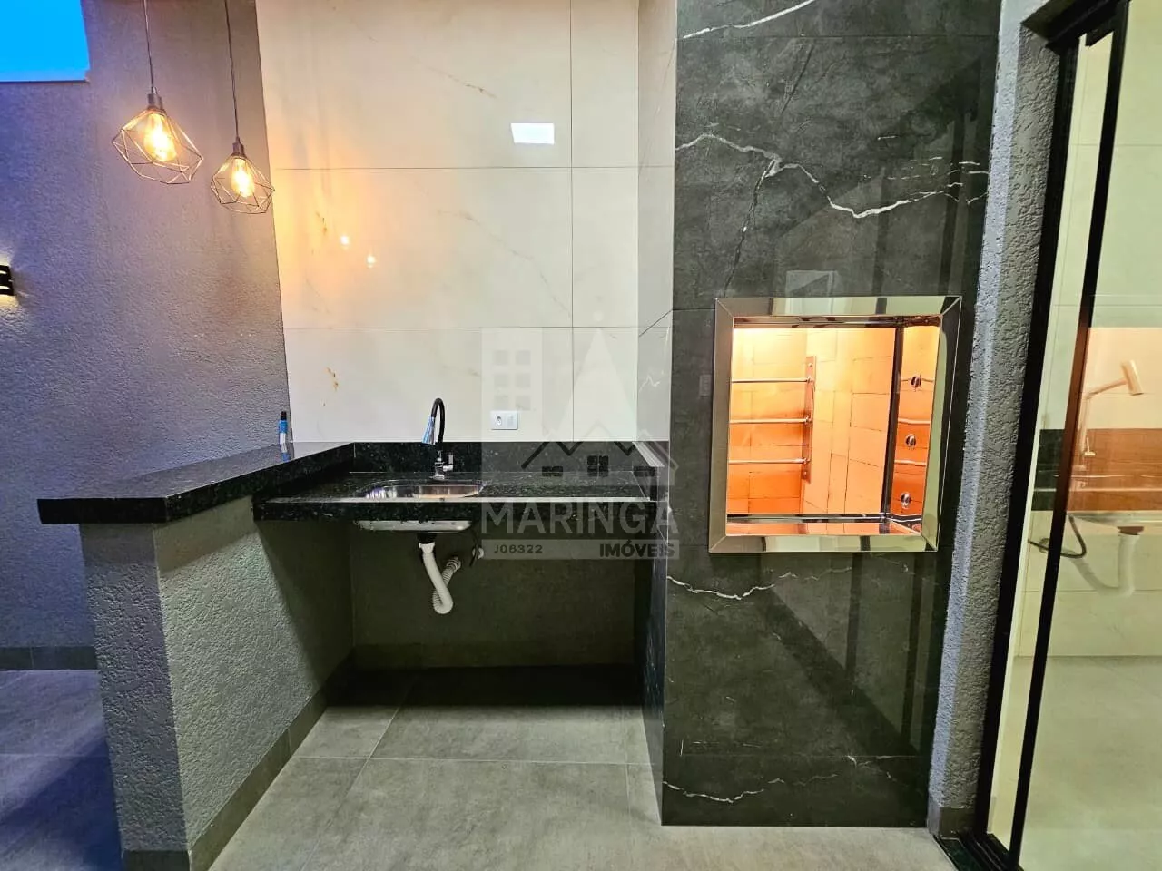 - Churrasqueira em porcelanato com acabamento em inox;