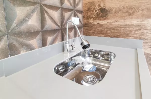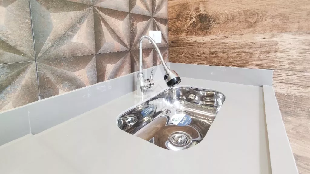 - Lavabo com acabamento em porcelanato 3D, e pia em porcelanato esculpido