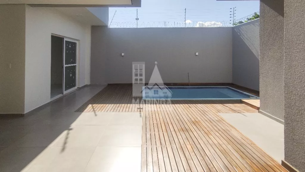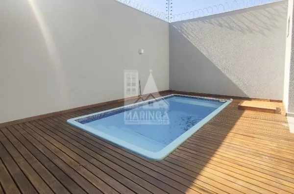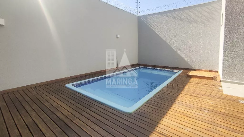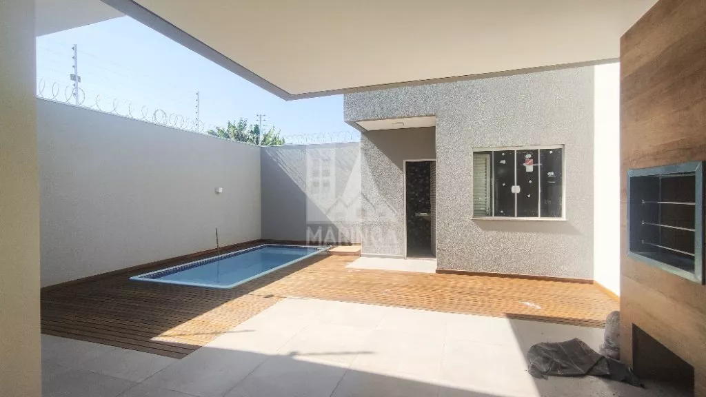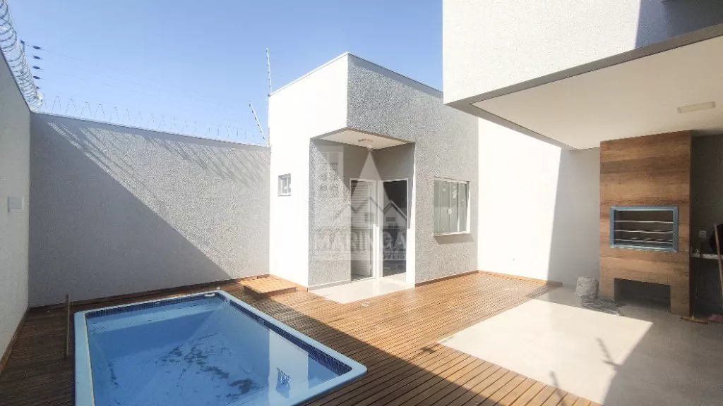 Casa moderna com PISCINA ótima localização em Maringá PR, contando com 3 quartos sendo 1 suíte, sala ampla com pé direito alto, cozinha integrada, área gourmet, 2 vagas de garagem.