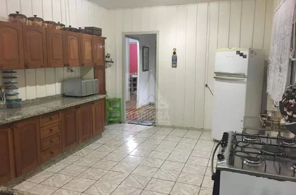 Casa mista de alvenaria e madeira em amplo quintal localizada no Centro de Campo Mourão.