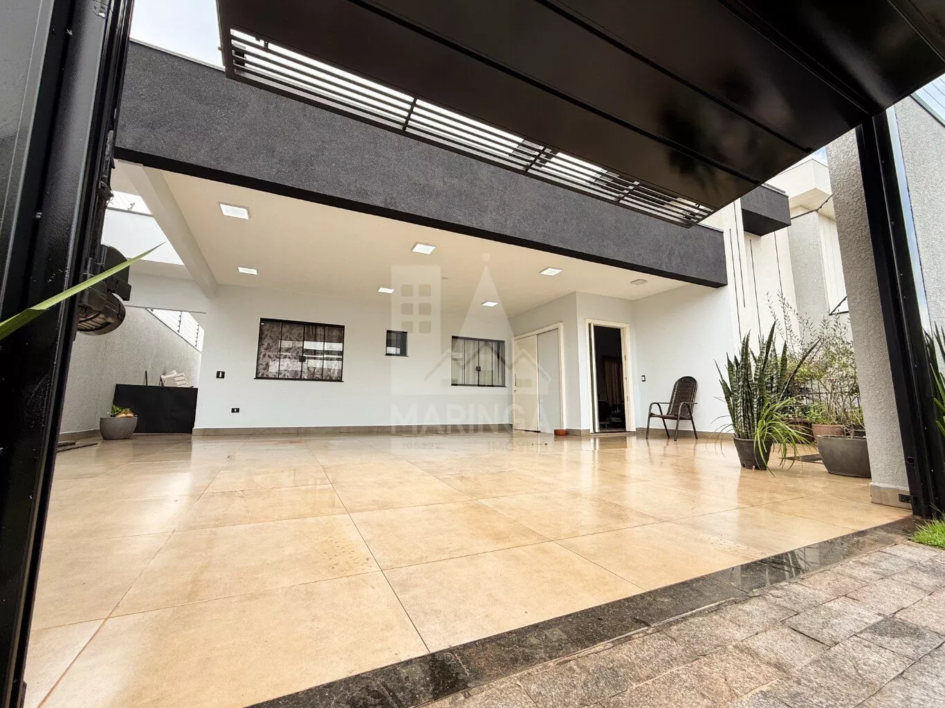 - Portão basculante com motor elétrico e travas de segurança