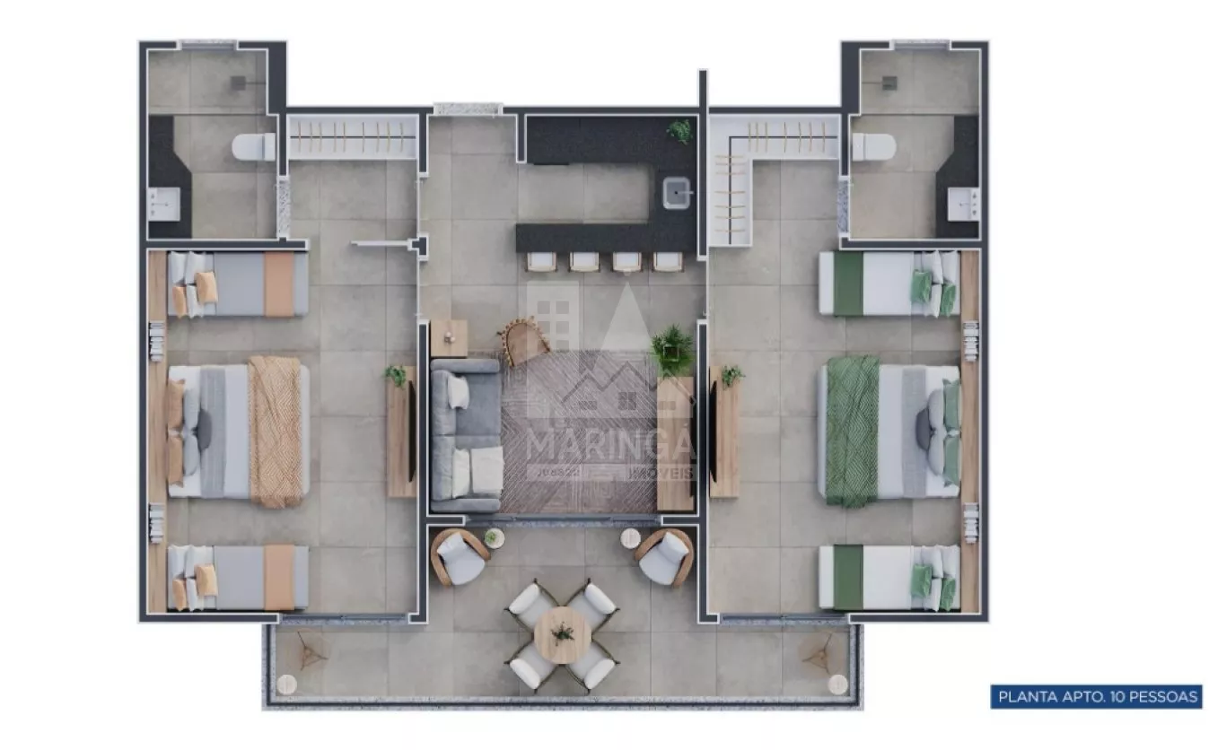 - 110 apartamentos de 97,22 m² de área privativa para até 10 pessoas