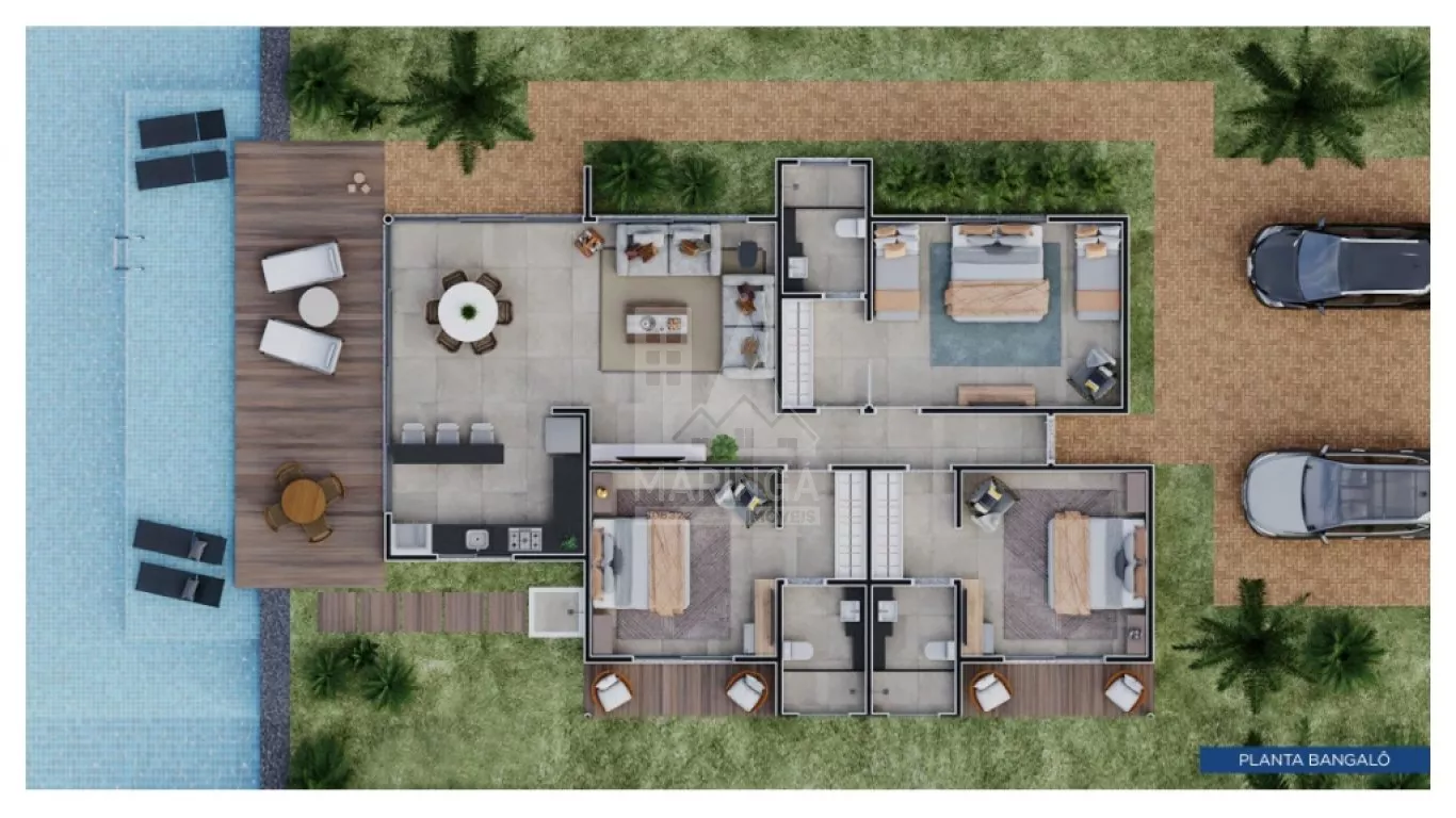 - 58 bangalôs de 142,41 m² de área privativa para até 10 pessoas