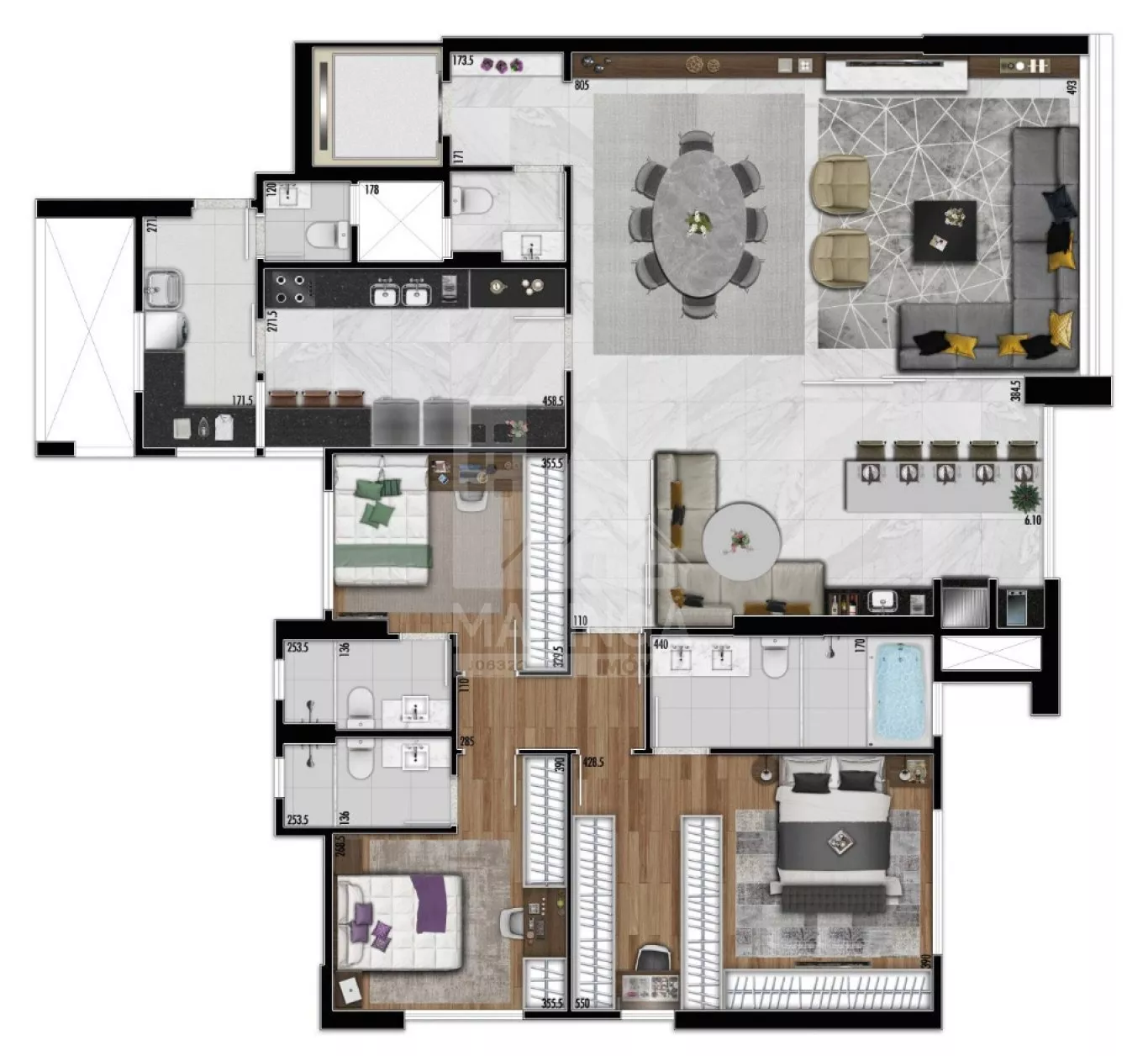 - Área privativa de 172 m²