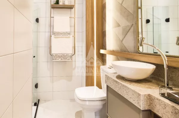 - Piso porcelanato nas áreas molhadas e laminado no restante